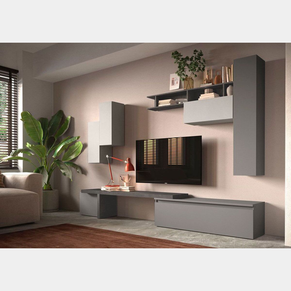 La Parete attrezzata moderna Ardesia, Gesso e Piombo si inserisce bene nei Living in stile moderno, ma risulta gradevole anche in contesti diversi, per merito della sua versatilità.