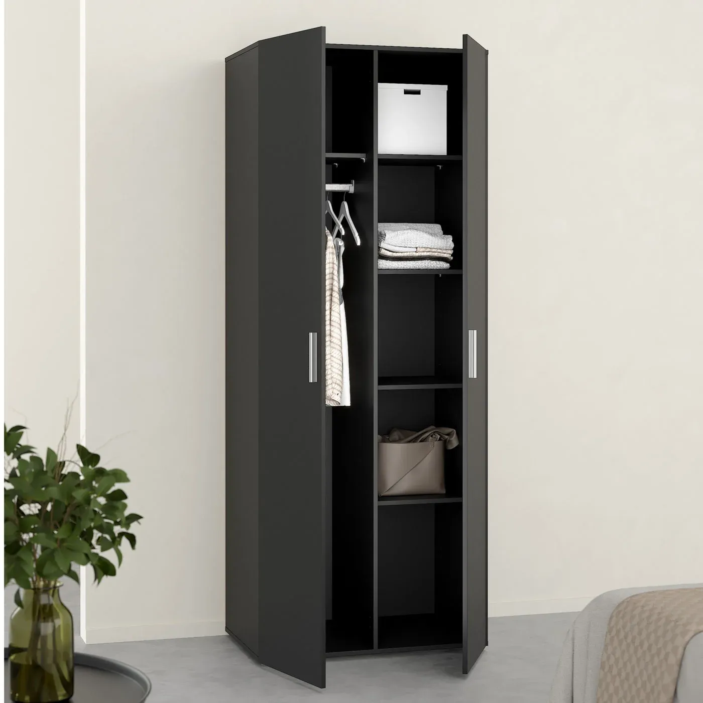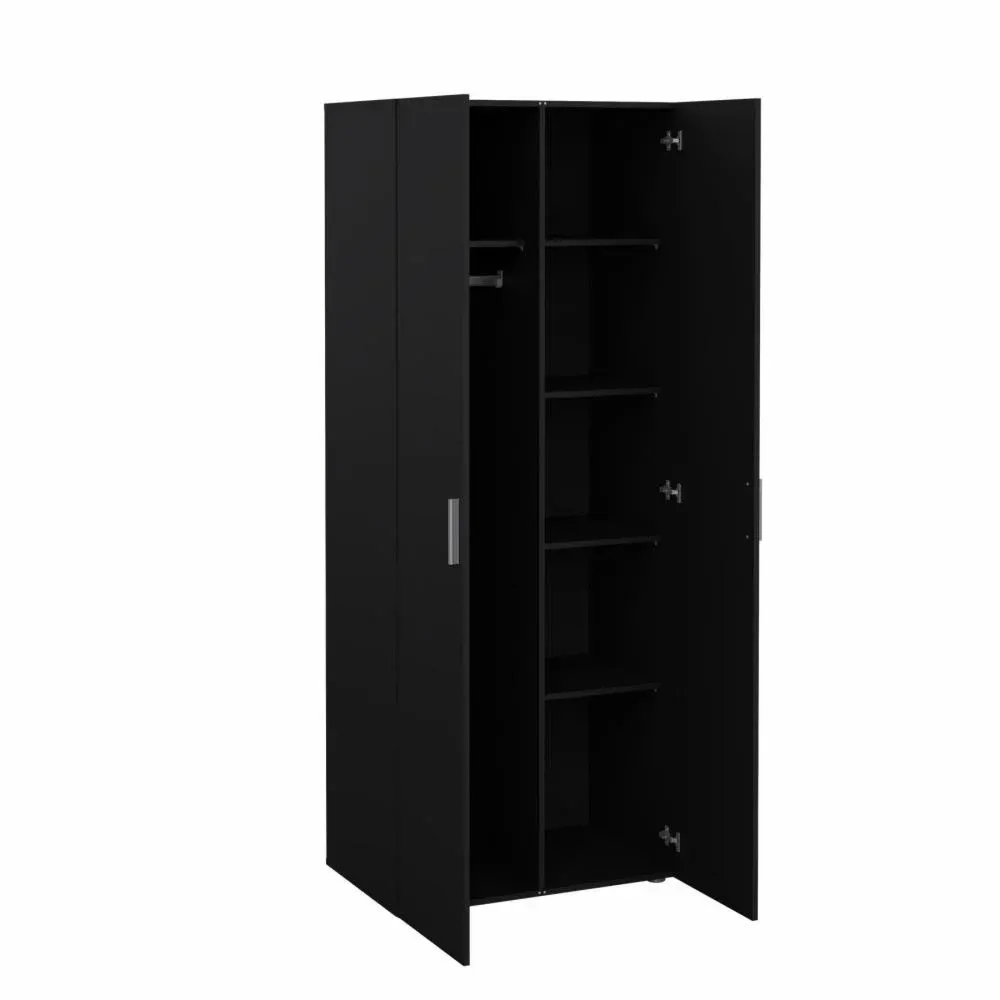 Armadio di tendenza in finitura Nero opaco composto da due ante battenti. Può essere collocato sia in una camere da letto oppure può svolgere anche una funzione multiuso.