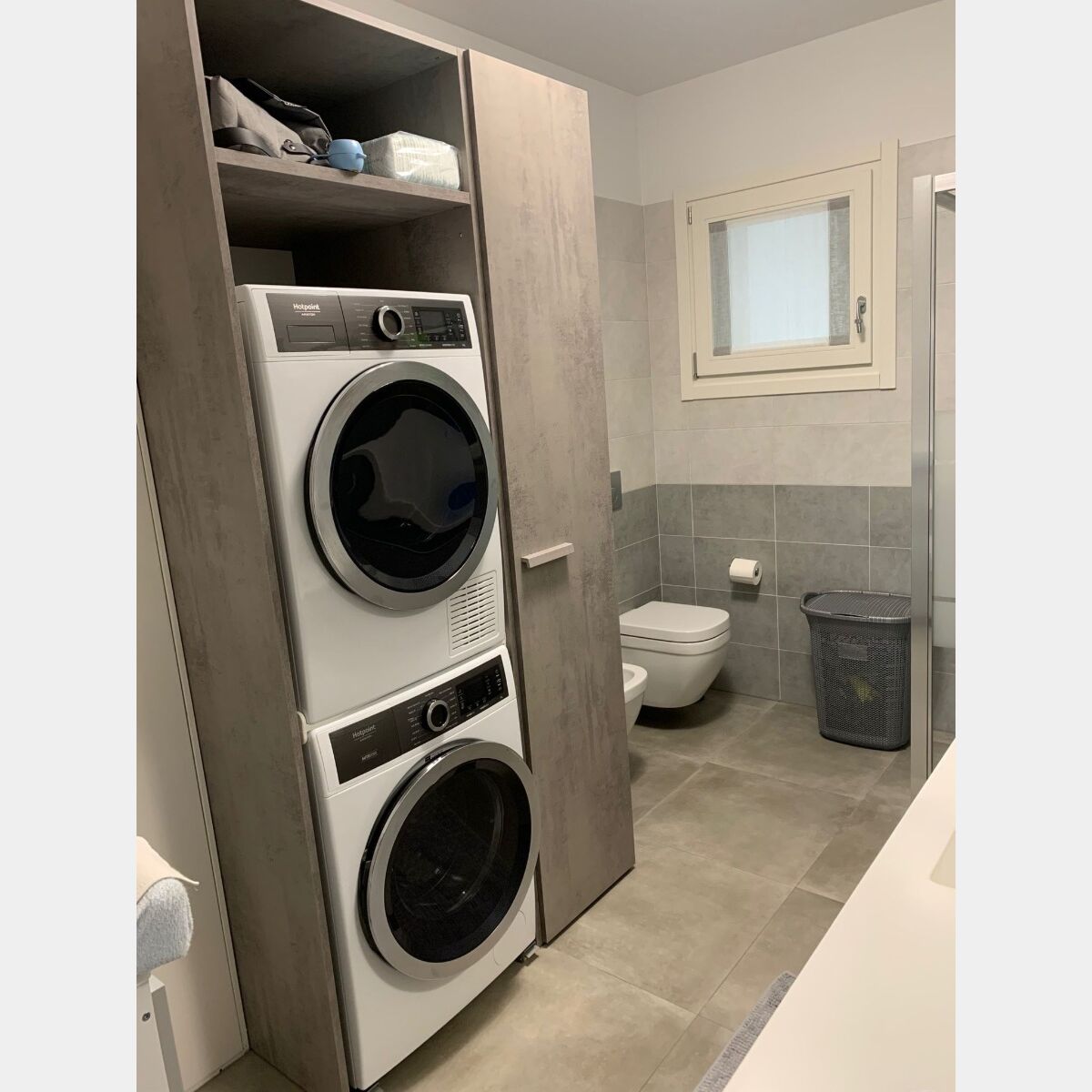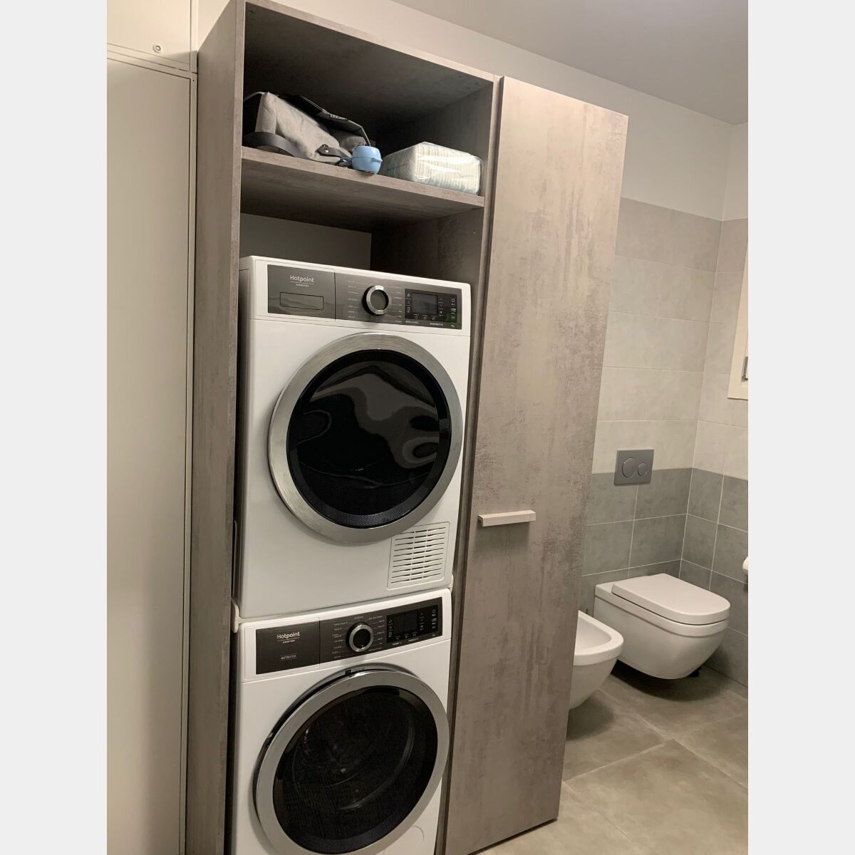 Ideale per ogni lavanderia o bagno il mobile svolge un importante funzione nel contenere lavatrice e asciugatrice, assicurando un arredo moderno ed elegante.