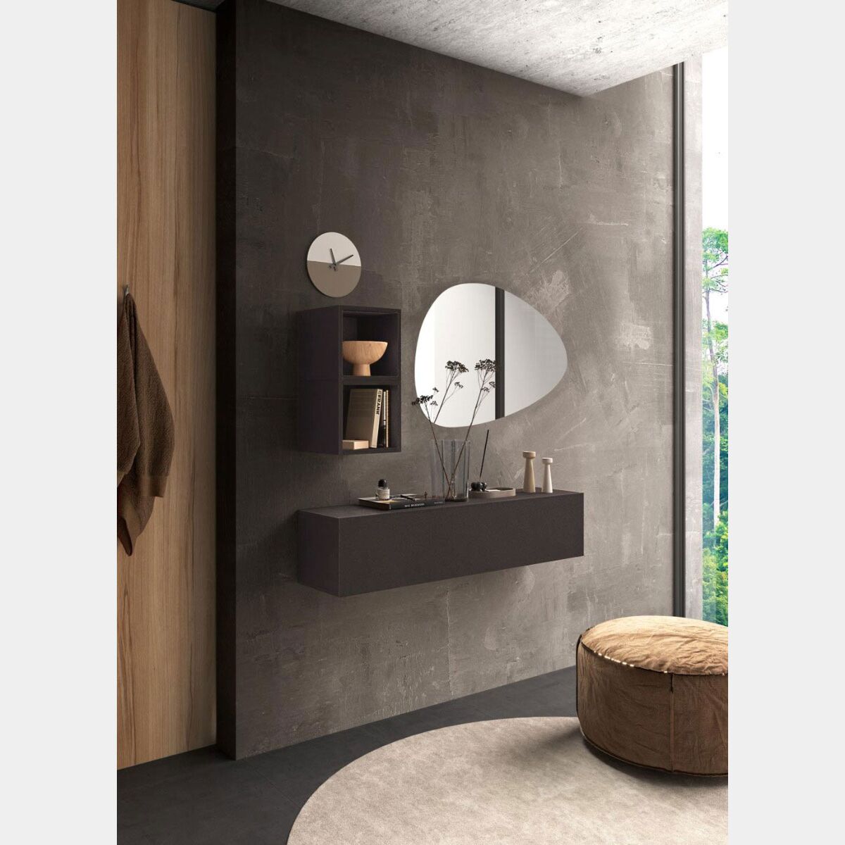 I pensili della Parete da Ingresso finitura Lava si incastrano alla perfezione creando una composizione, semplice, moderna e all'avanguardia.