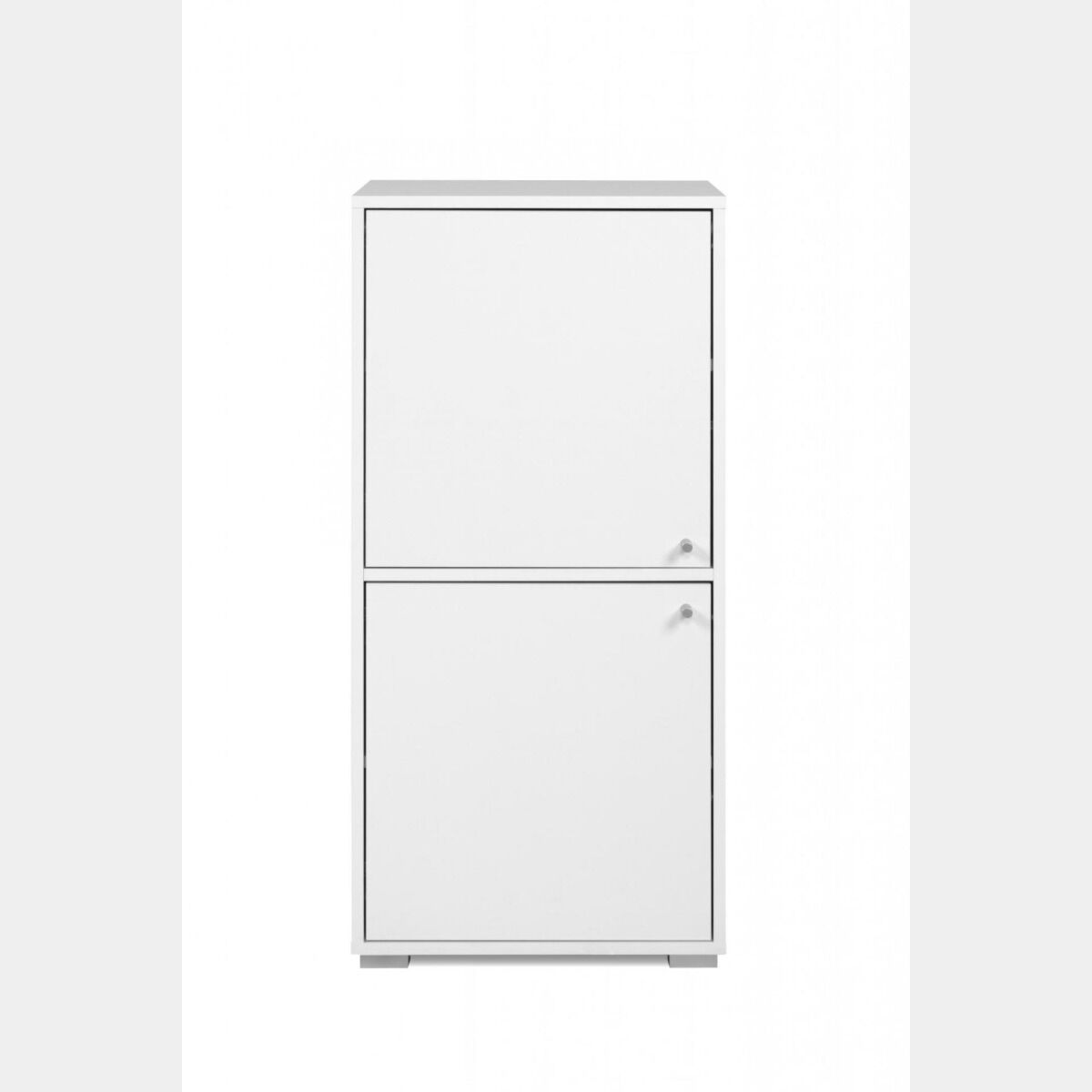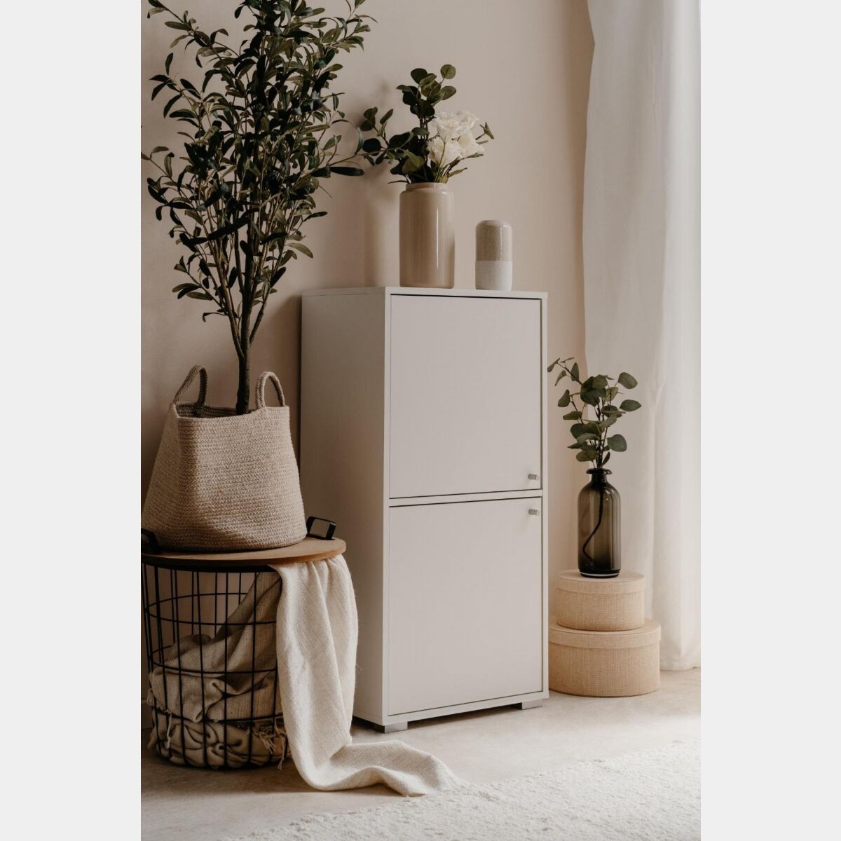 Mobile multiuso con 2 ante e 3 ripiani, stile minimal in finitura Bianco.