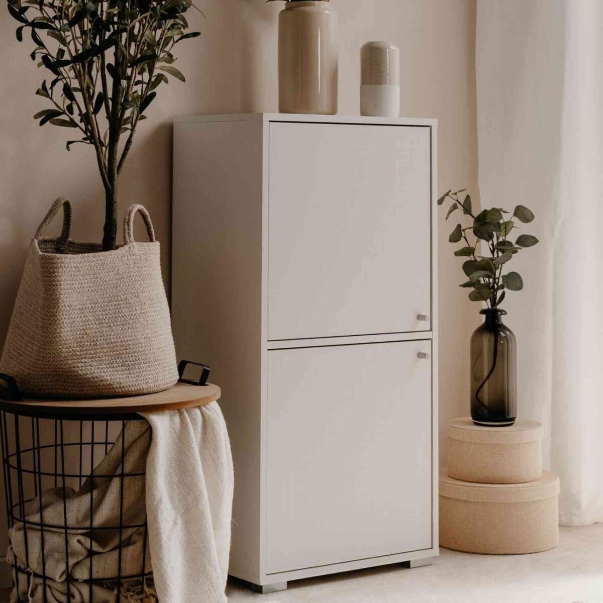 Conveniente Mobile multiuso con due ante e tre ripiani, Bianco