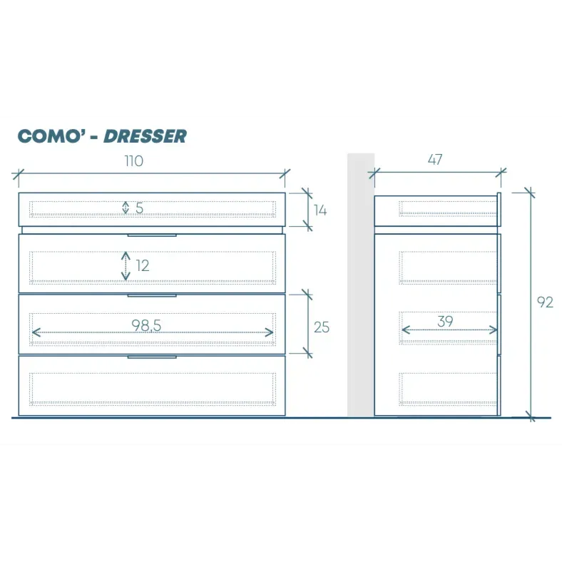 I comodini sono dotati di tre cassetti, l'apertura avviene tramite sottile maniglie dal design moderno. Cassetto superiore e top sono in Antracite mentre i due inferiori in Cashmere.