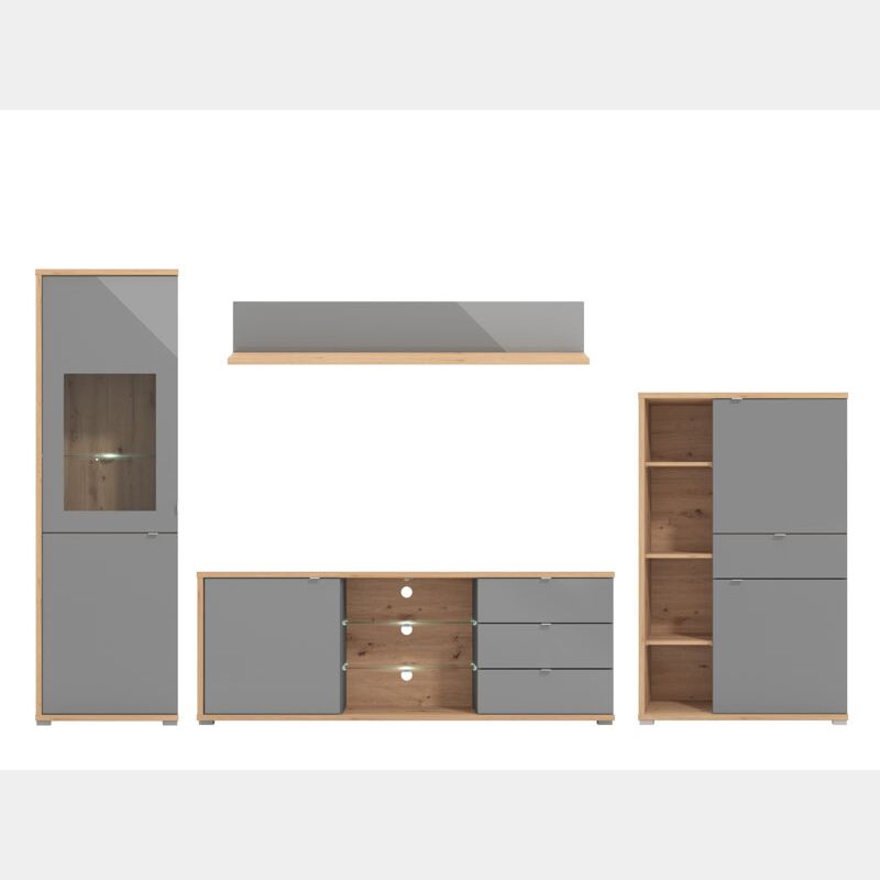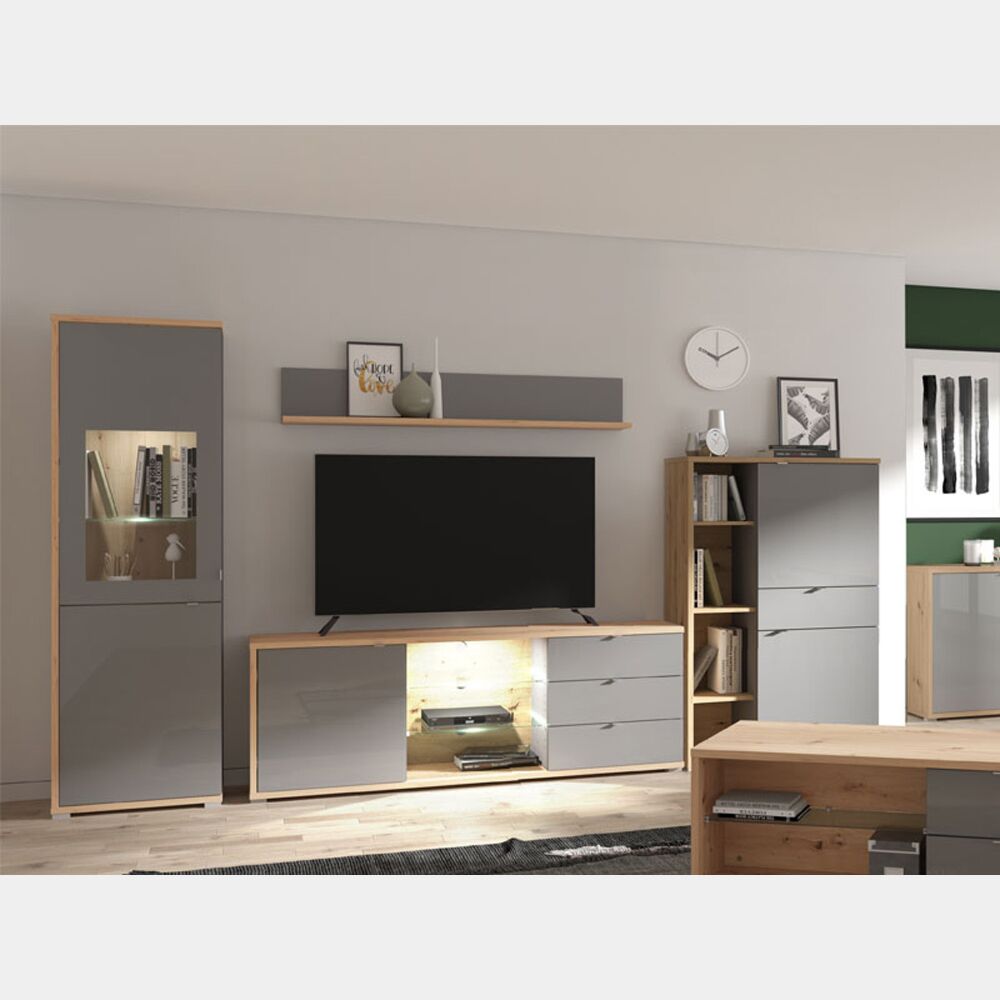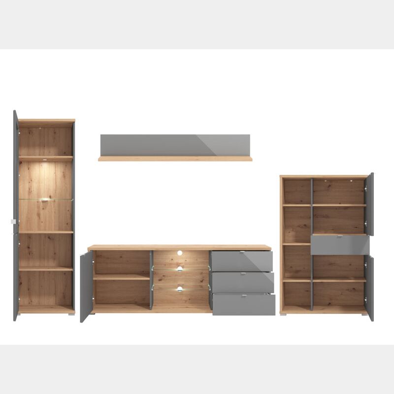 La Parete Attrezzata finitura Grafite e Rovere è una soluzione d'arredo moderna ed elegante, adatta a soggiorni e open space di tutte le dimensioni.