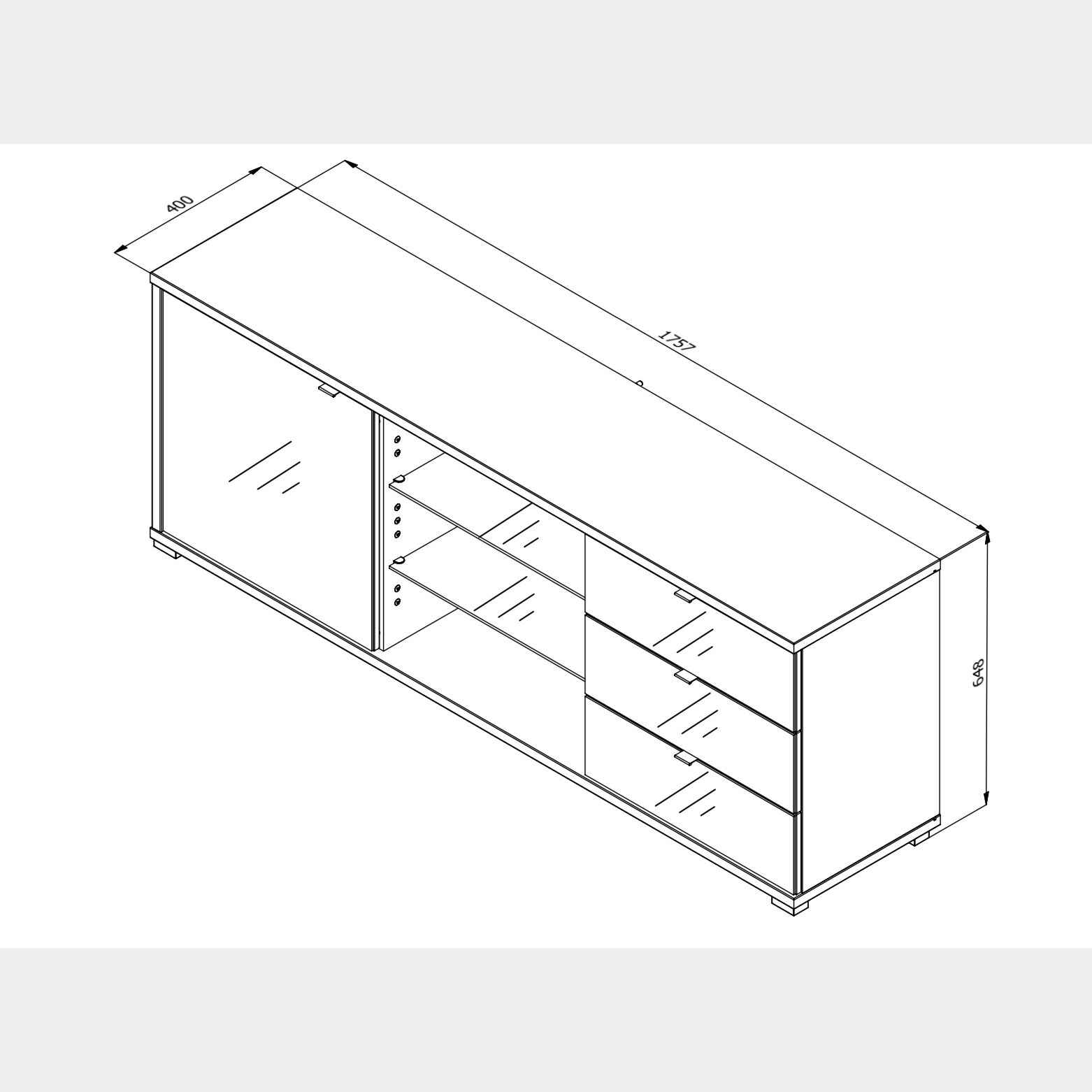 La parete attrezzata è composta da una madia alta, da una vetrina colonna, una mensola e un porta TV e fa parte dell'esclusiva Collezione Belgrado. La suddisivione interna degli elementi assicura un'ampia capienza per piatti, libri, soprammobili e molto altro.