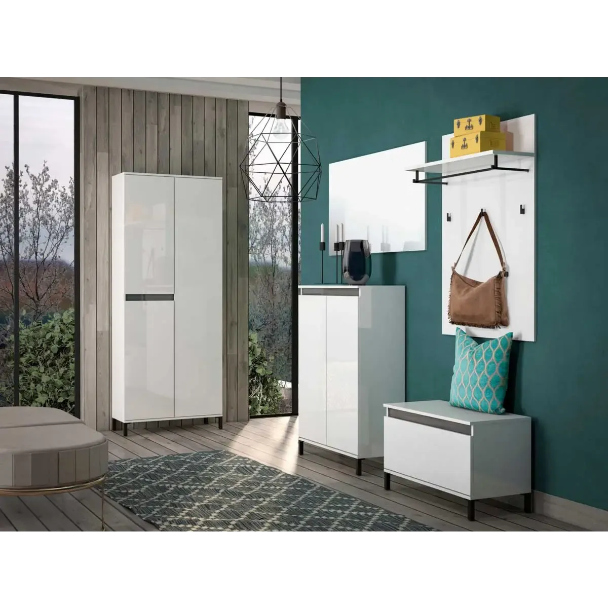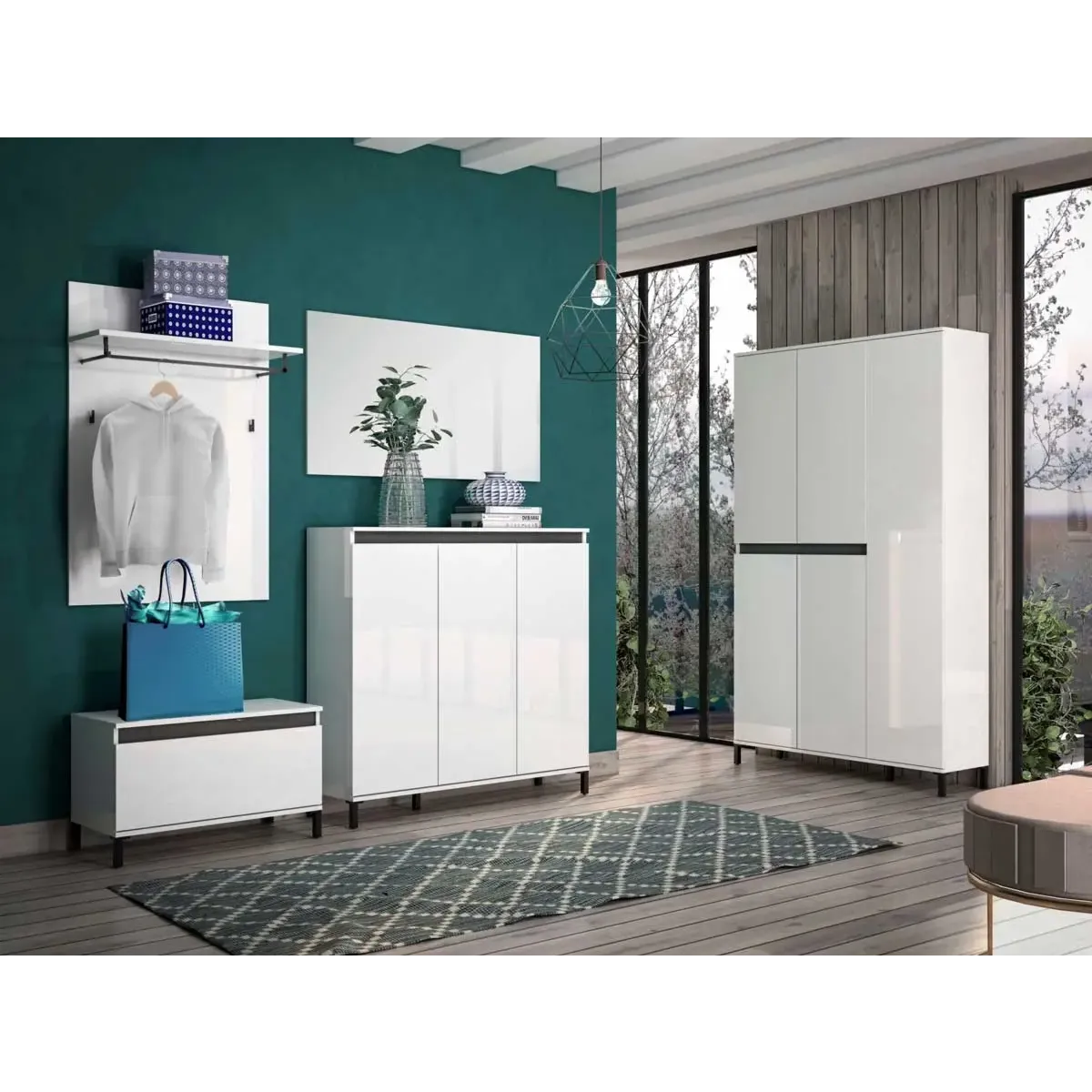 Scarpiera moderna in finitura Bianco lucido, semplice e dalle linee minimal, questa panca interpreta al meglio la zona living.
