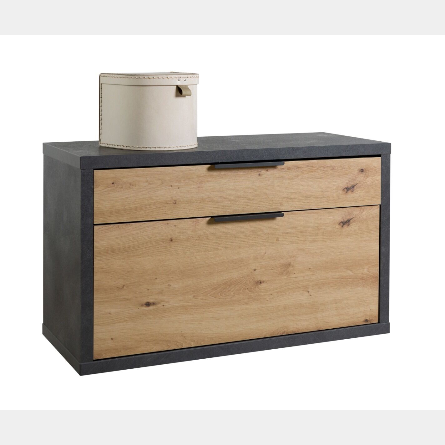 Panca con 1 ribalta e 1 cassetto Rovere chiaro e Grigio smoke, Made in Italy