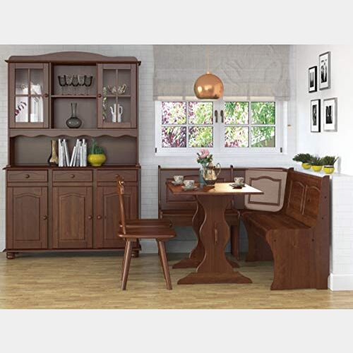 La panca contenitore ad angolo misura 124cm a DX e 163cm a SX, ma tali misure possono essere invertite nel montaggio. La cassapanca viene accompagnata da una tavolo e due sedie (selezionarli dal menù qui sotto)
