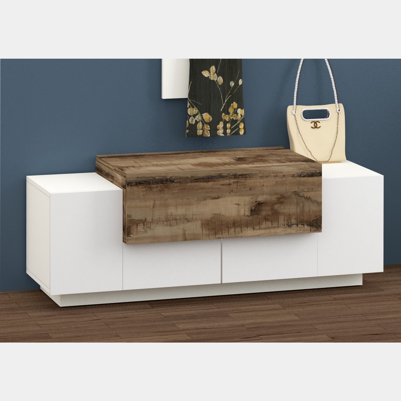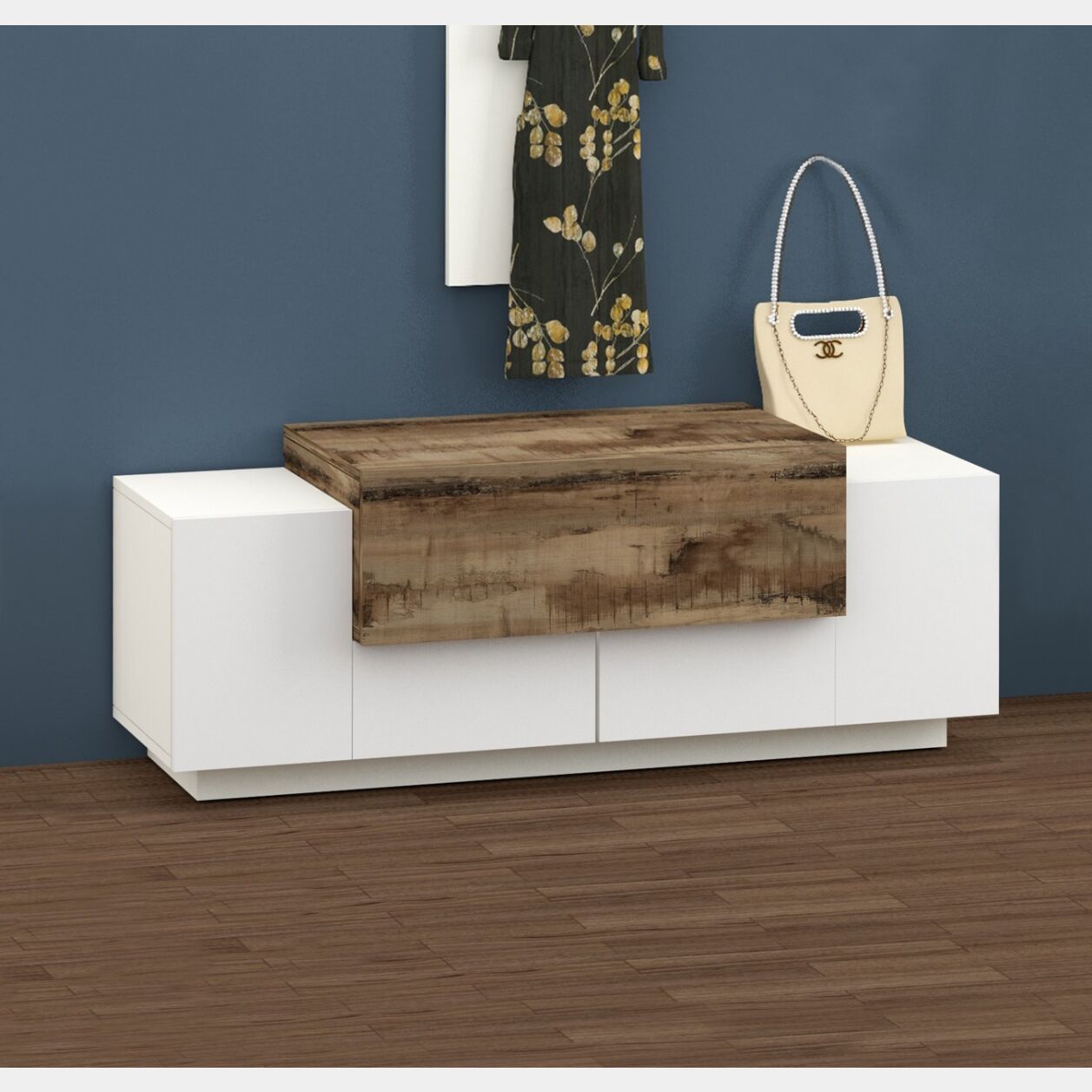 Un mobiletto pensato per l'ingresso e piccoli spazi che ti consente di avere un piano di appoggio per mantenere l'ambiente in ordine.