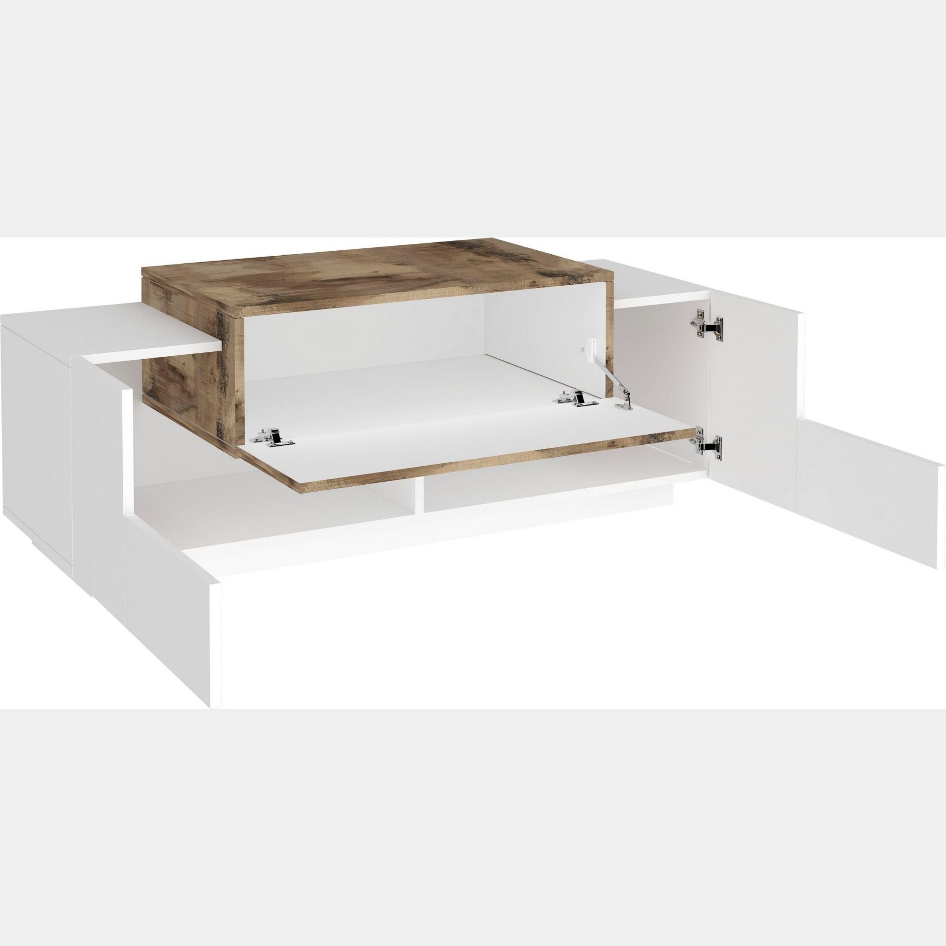 La panca prensenta un design moderno e funzionale: le 2 ante in Bianco lucido assicurano un'ampia capienza, così come la ribalta Pero posta nella parte superiore della struttura.