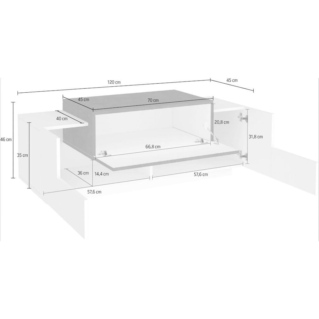 Dimensioni: L.120 H.46 P.45