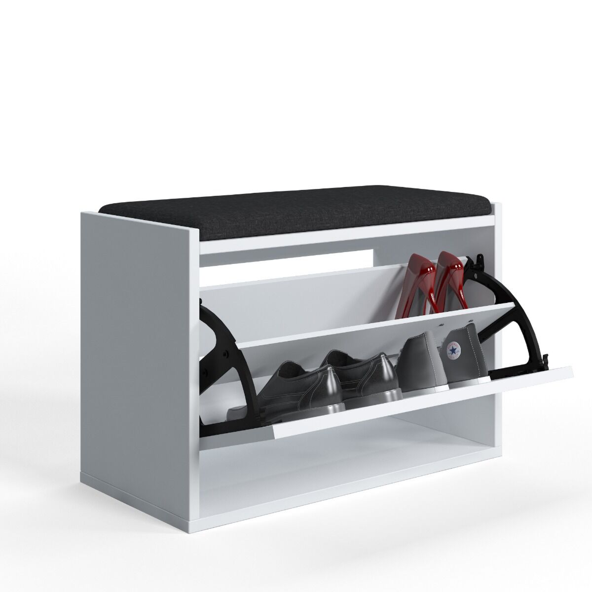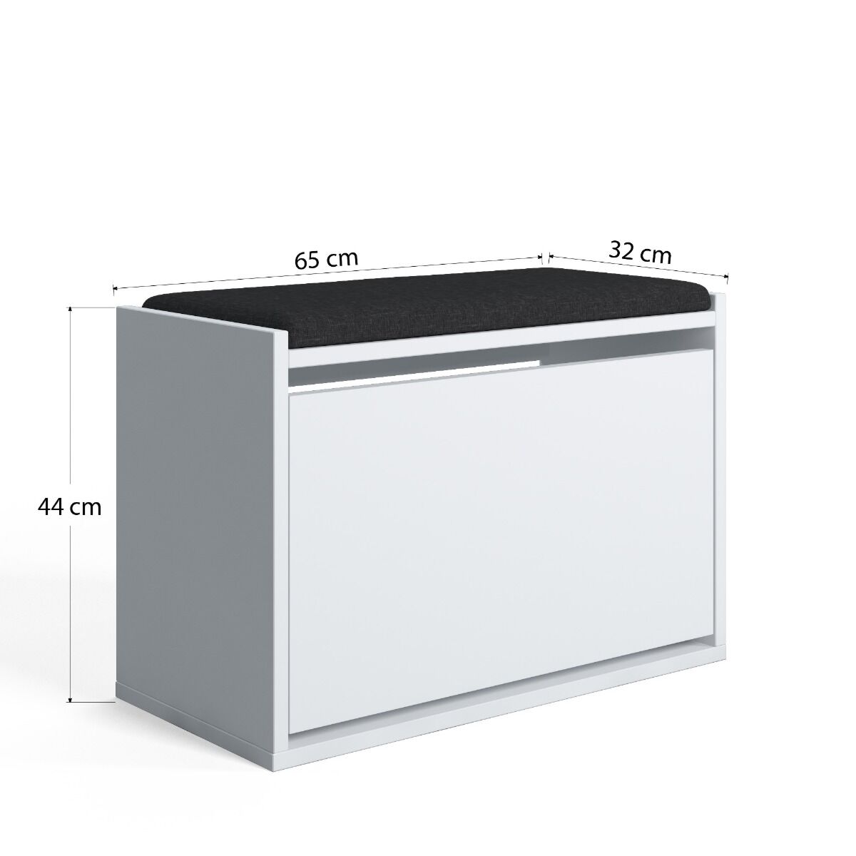 La scarpiera è dotata di una ribalta utile per posizionare le scarpe, il suo design semplice garantisce una perfetta adattabilità ad ogni stile. La panca è dotata di un comodono cuscino Nero che si contrappone al bianco della struttura.