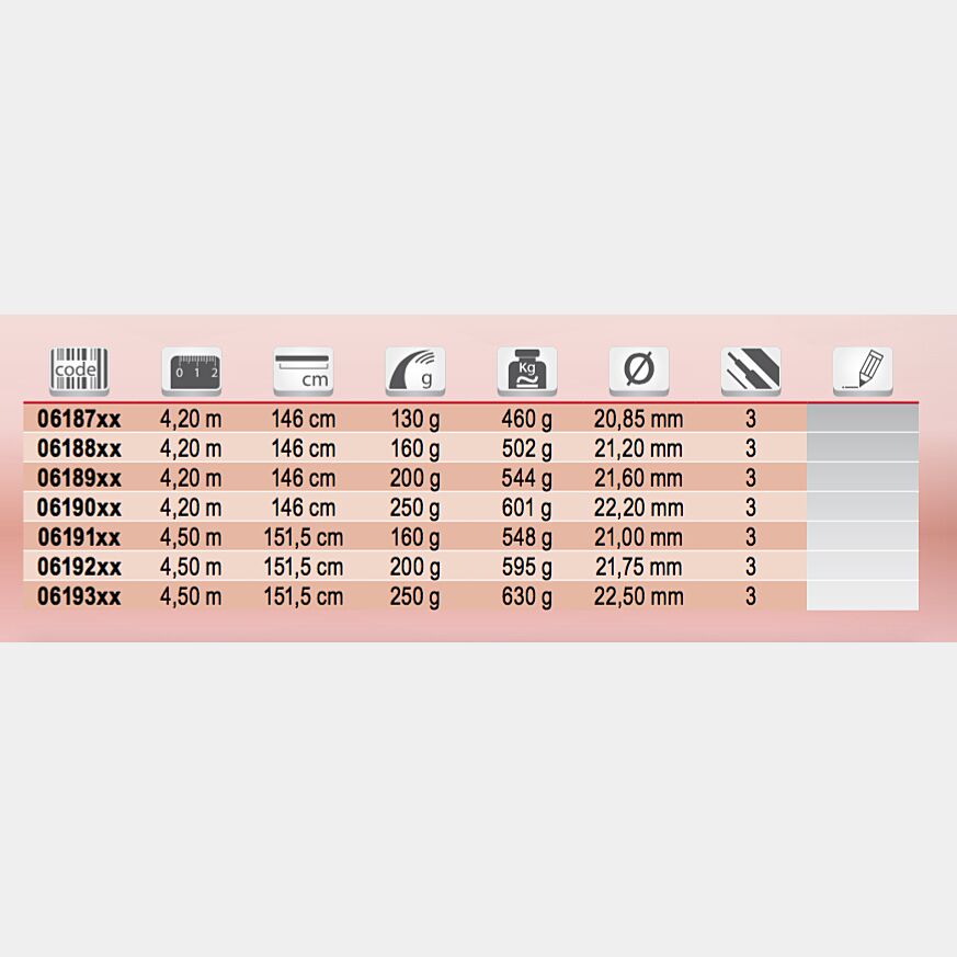 Misura 4,20 m| Ingombro 146 cm| Potenza 130 g | Peso 460 g | Diametro 20,85 mm| Sezioni 3