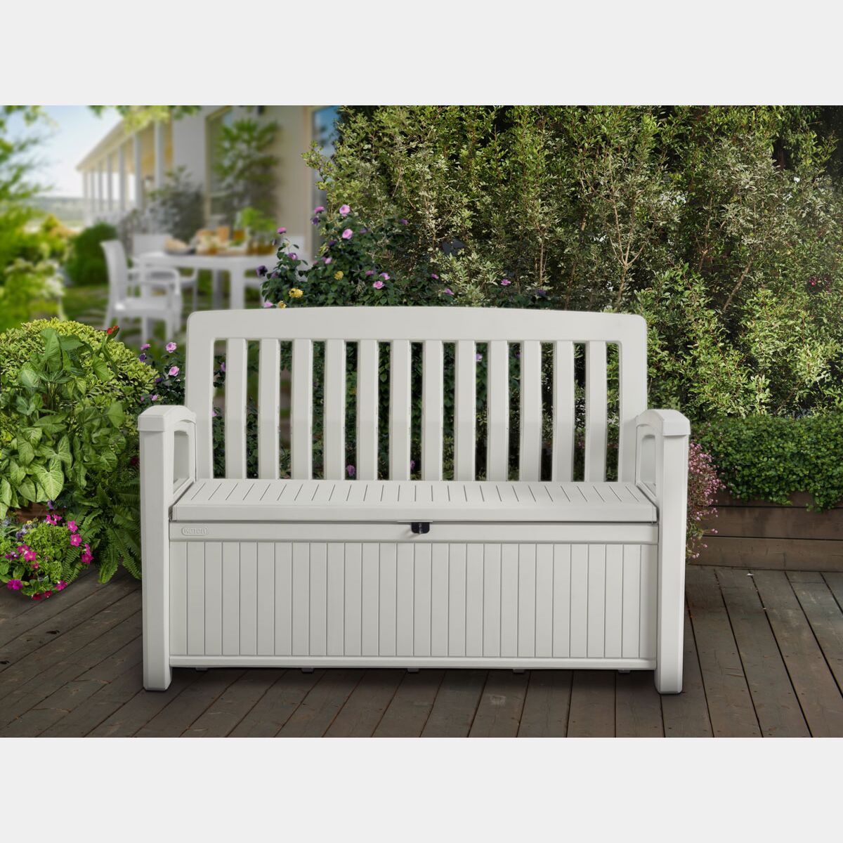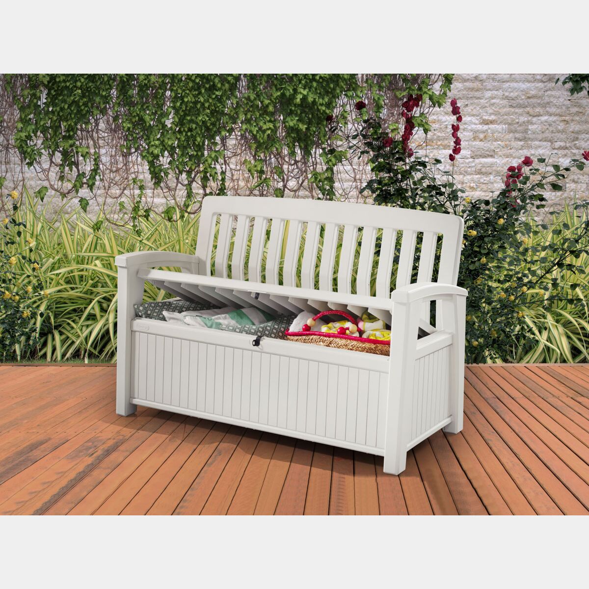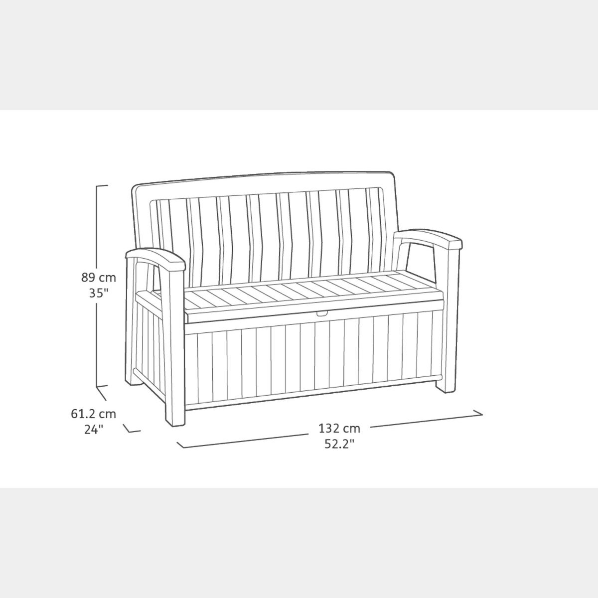 La panchina Abete è un'aggiunta pratica e funzionale al tuo giardino, fornendo una comoda seduta per due persone e un vano contenitore con 227 litri di capacità ideale per contenere attrezzi da giardino e cuscini. Realizzata con resina durevole resistente agli agenti atmosferici, non richiede manutenzione ed è semplice da utilizzare.