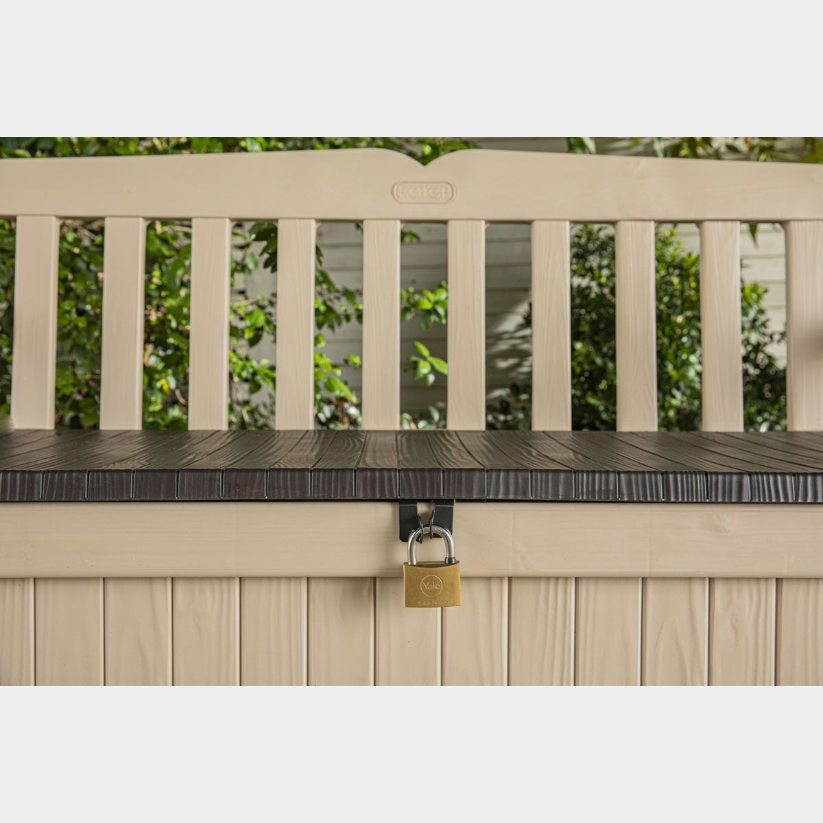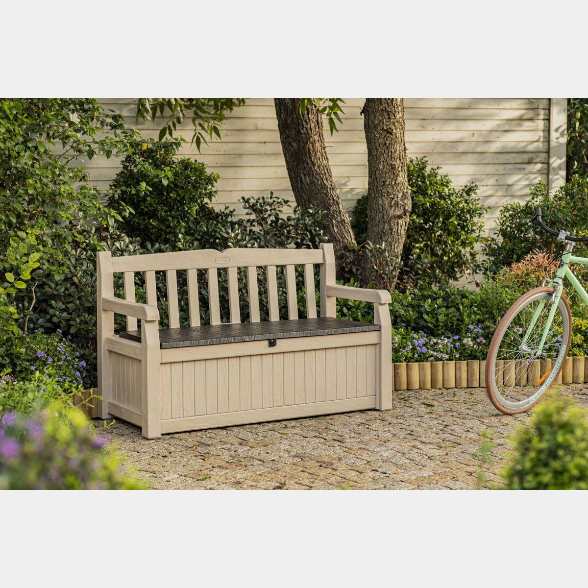 - Il vano contenitore con 265 litri di capacità è perfetto per conservare accessori da giardino, cuscini, giocattoli e molto altro