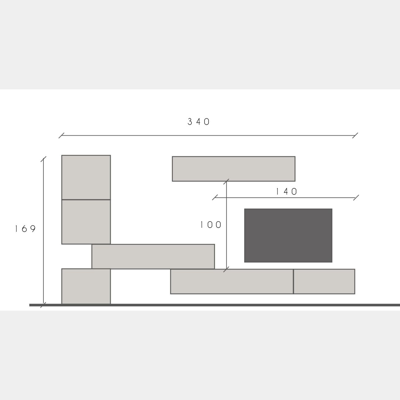 Parete attrezzata 340x30x169 h cm, Mercure cannettato e Gesso, collezione Logica