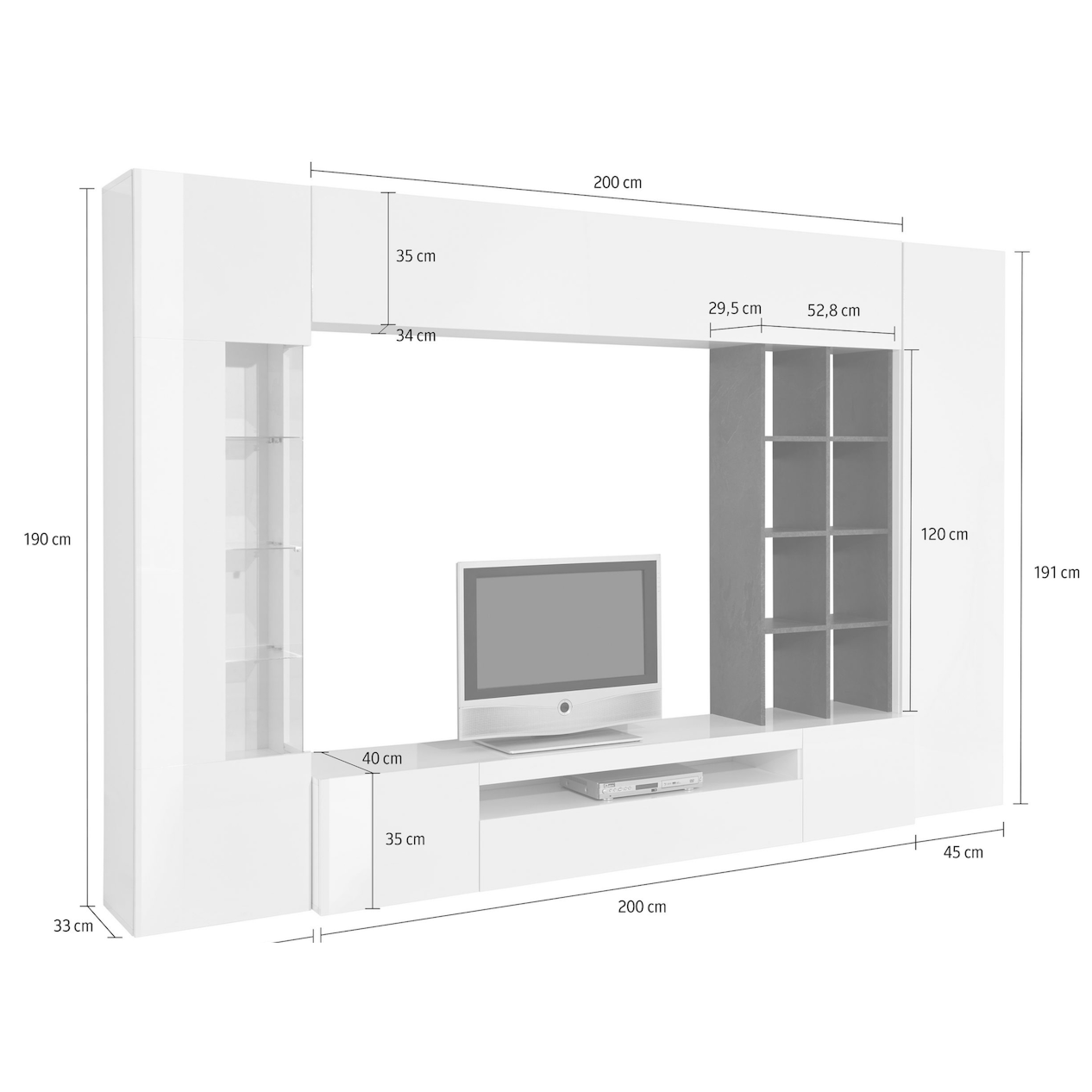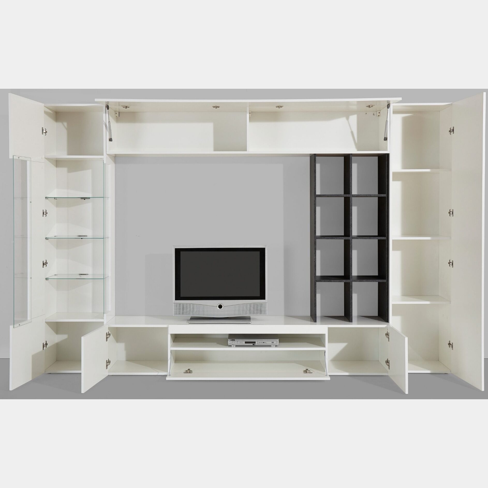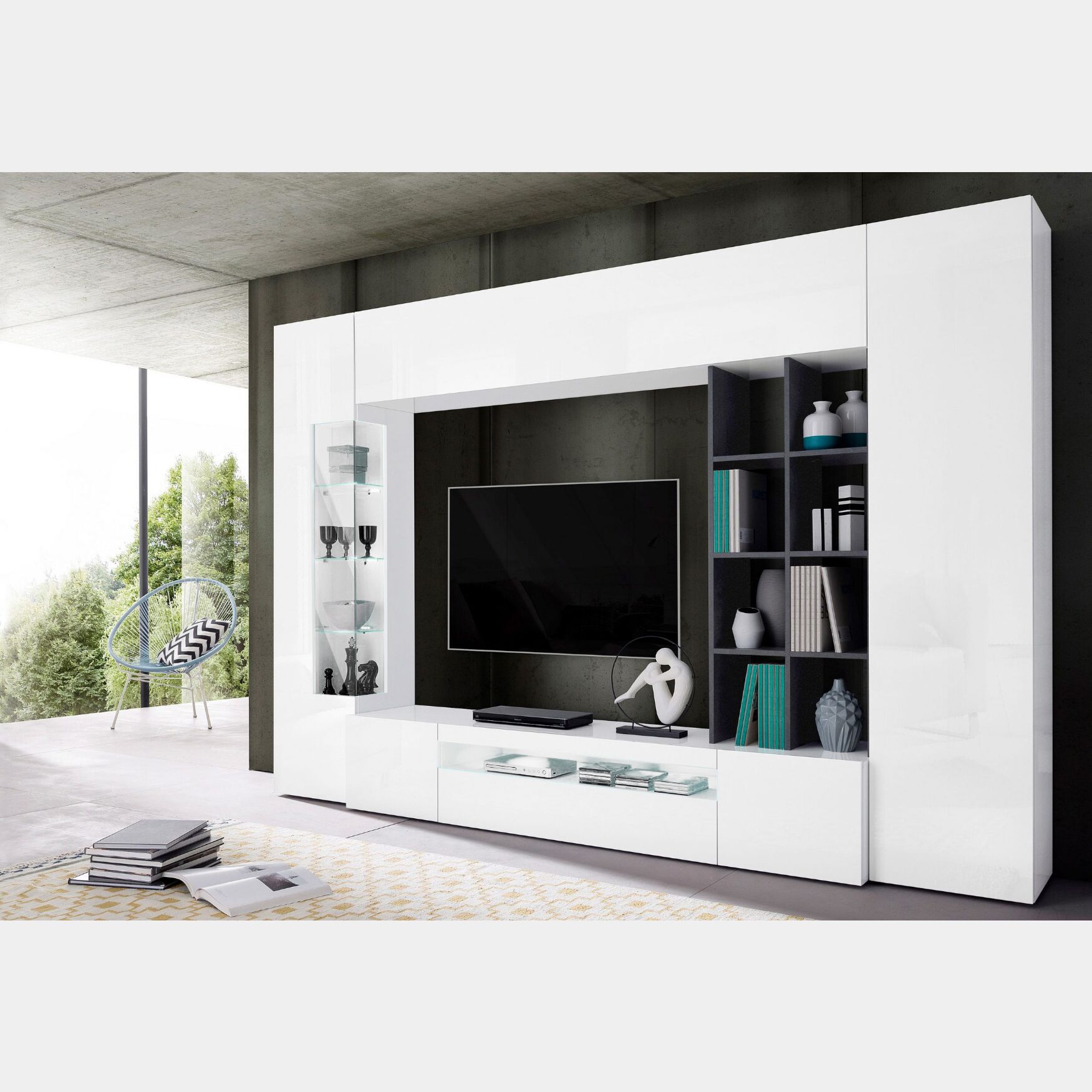 Parete attrezzata Bianca lucido e Ardesia