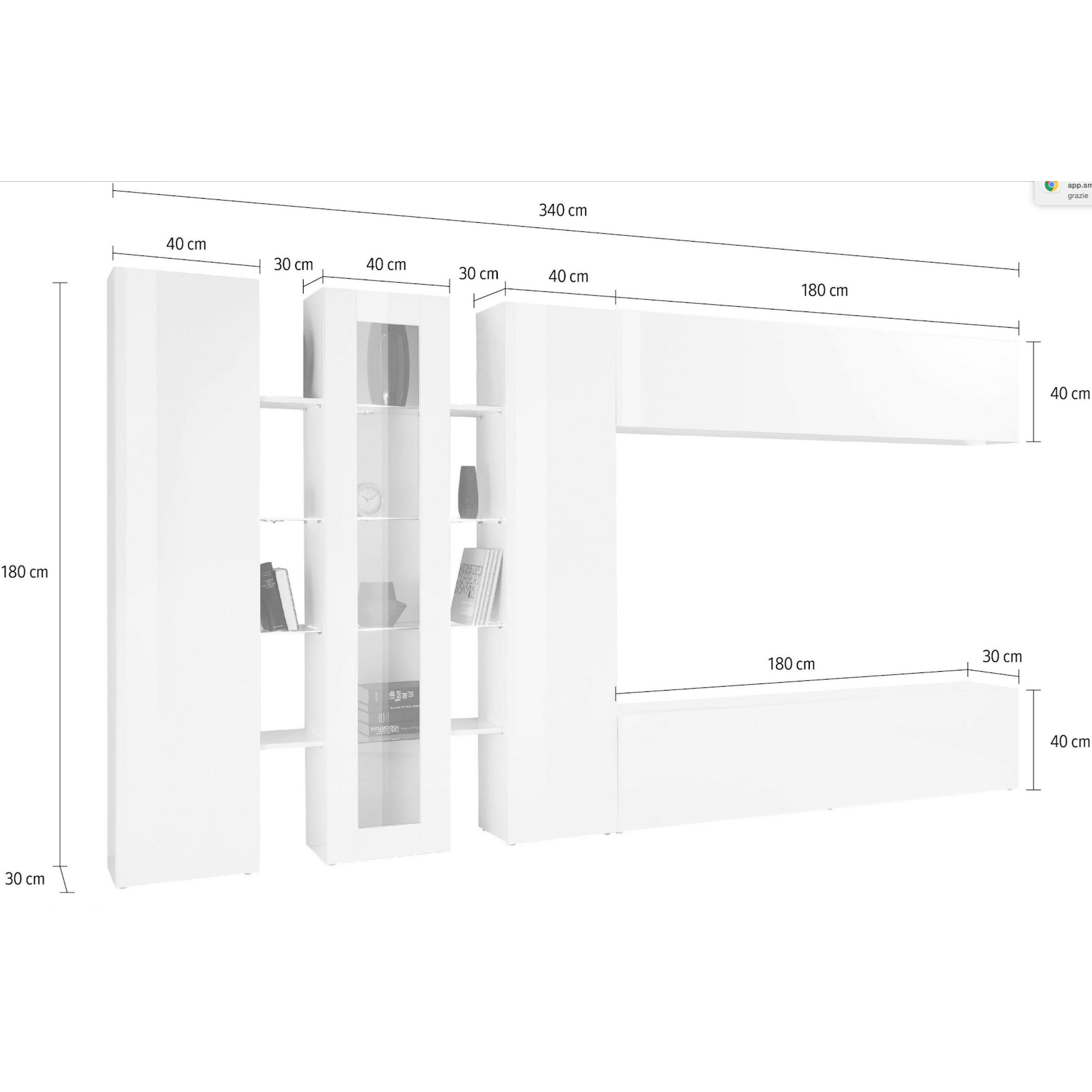 Pensile orizzontale: L.180 H.40 P.30