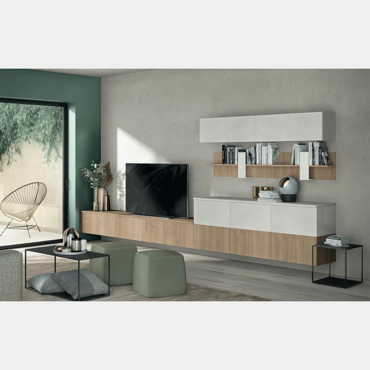 Grazie alla possibilità di variare le finiture la parete si adatta ad ogni living, secondo il proprio stile e gusto. La parete fa parte della collezione Aquila, dove è possibile trovare altre soluzioni.