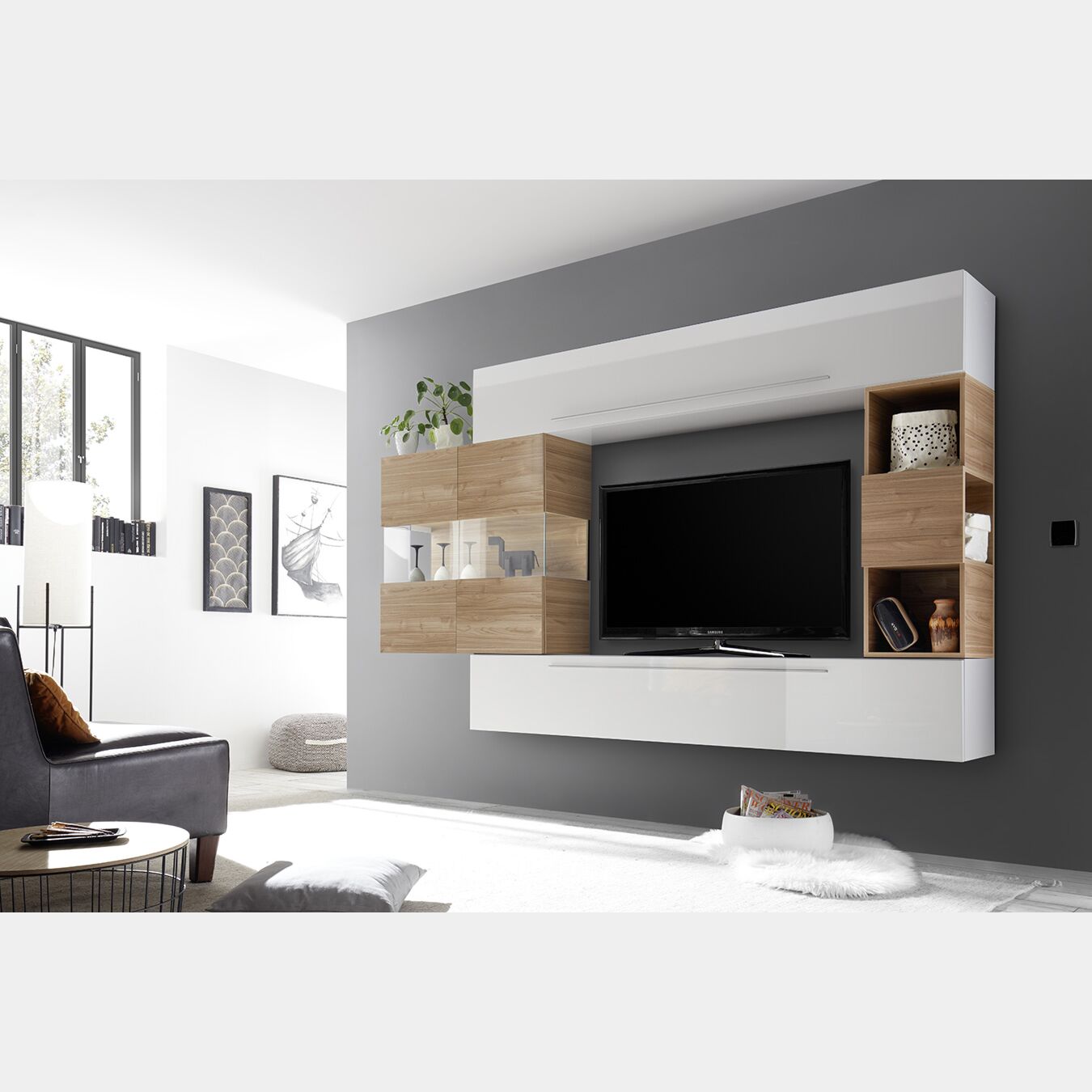 Parete attrezzata soggiorno moderno scontatissimo: è una proposta 100% made in Italy. La parete attrezzata, fresca e moderna si adatta a tutti gli ambienti per offrire alla tua zona living un tocco di tendenza.