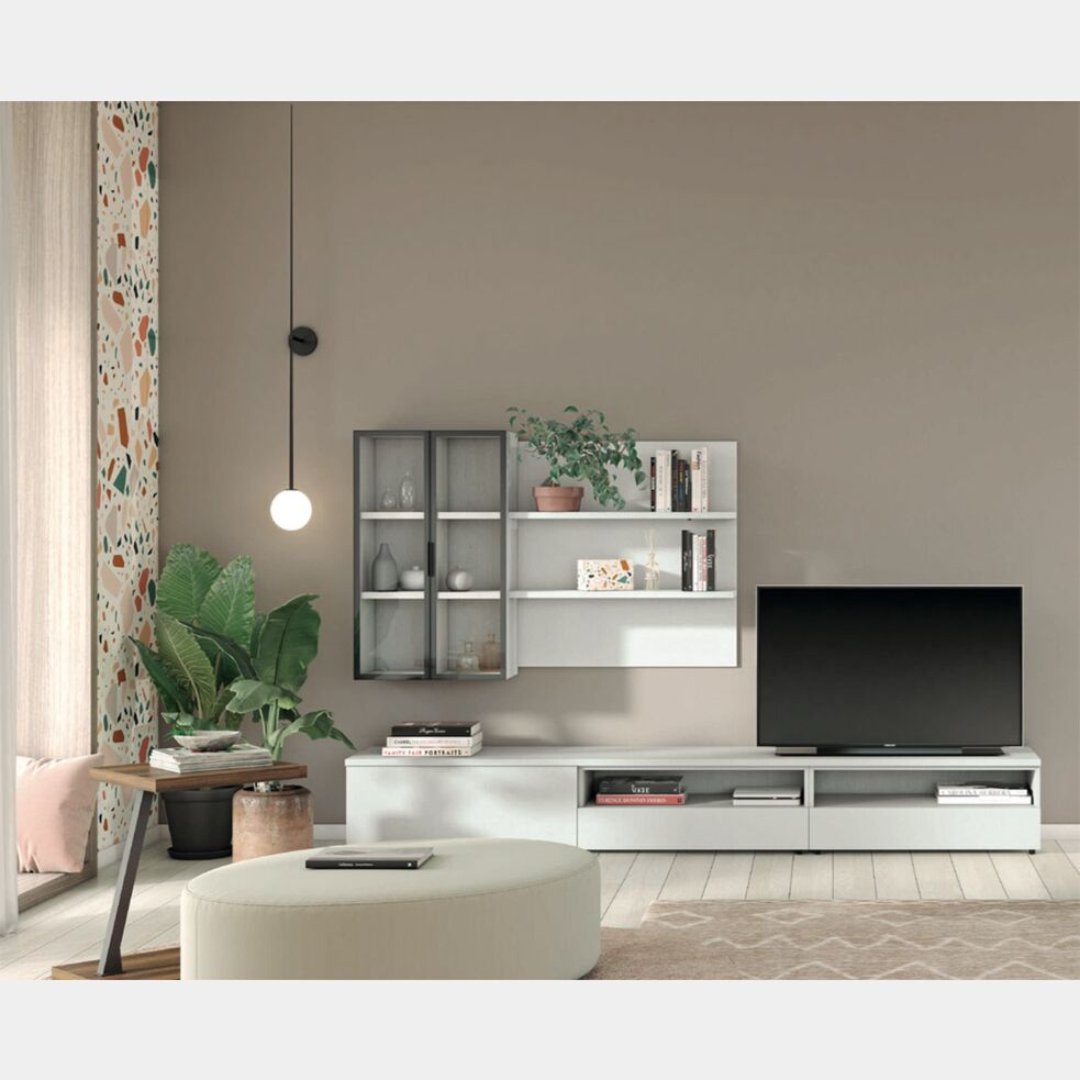Parete attrezzata con vetrina in finitura Cemento artico