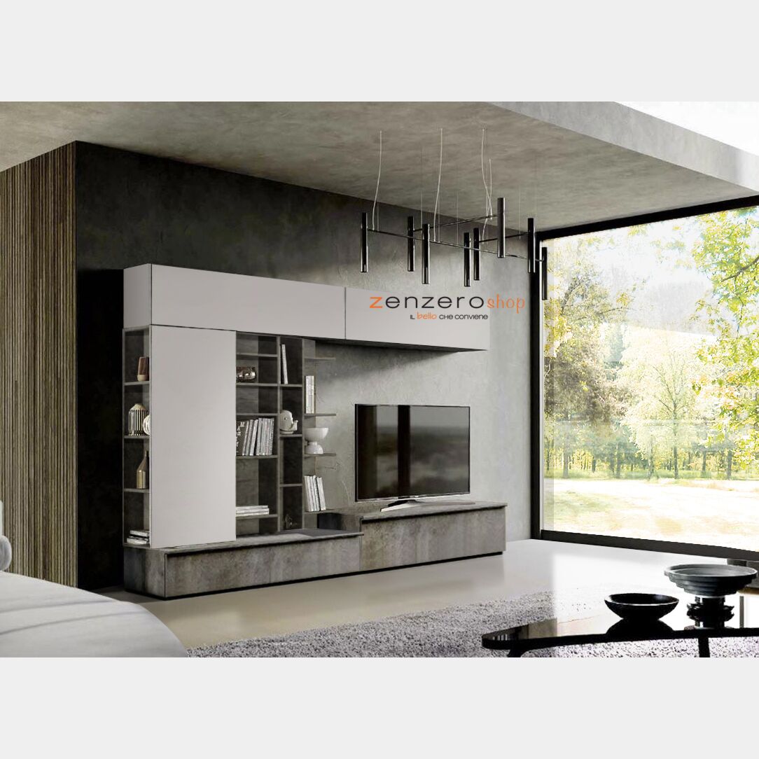 Parete attrezzata di alta qualità Made in Italy, con finitura in Grigio Seta e Ardesia Chiaro