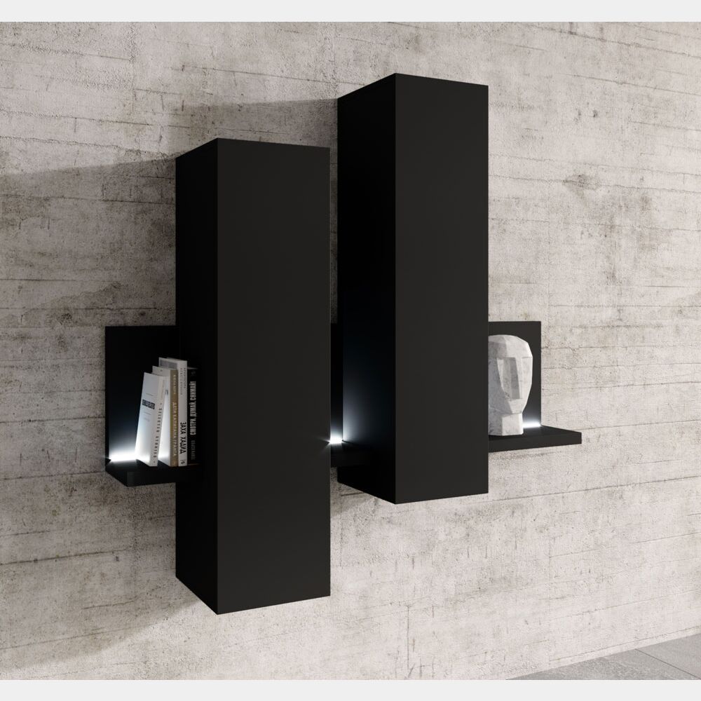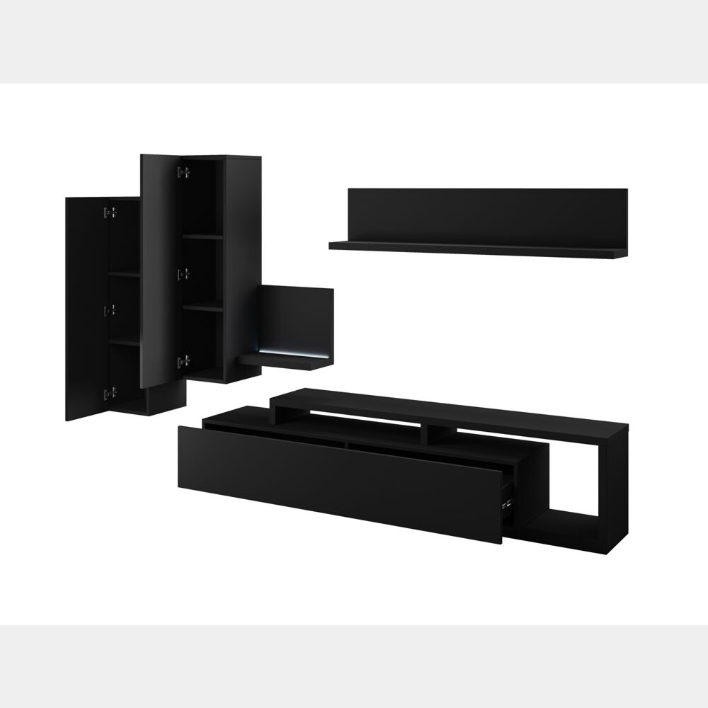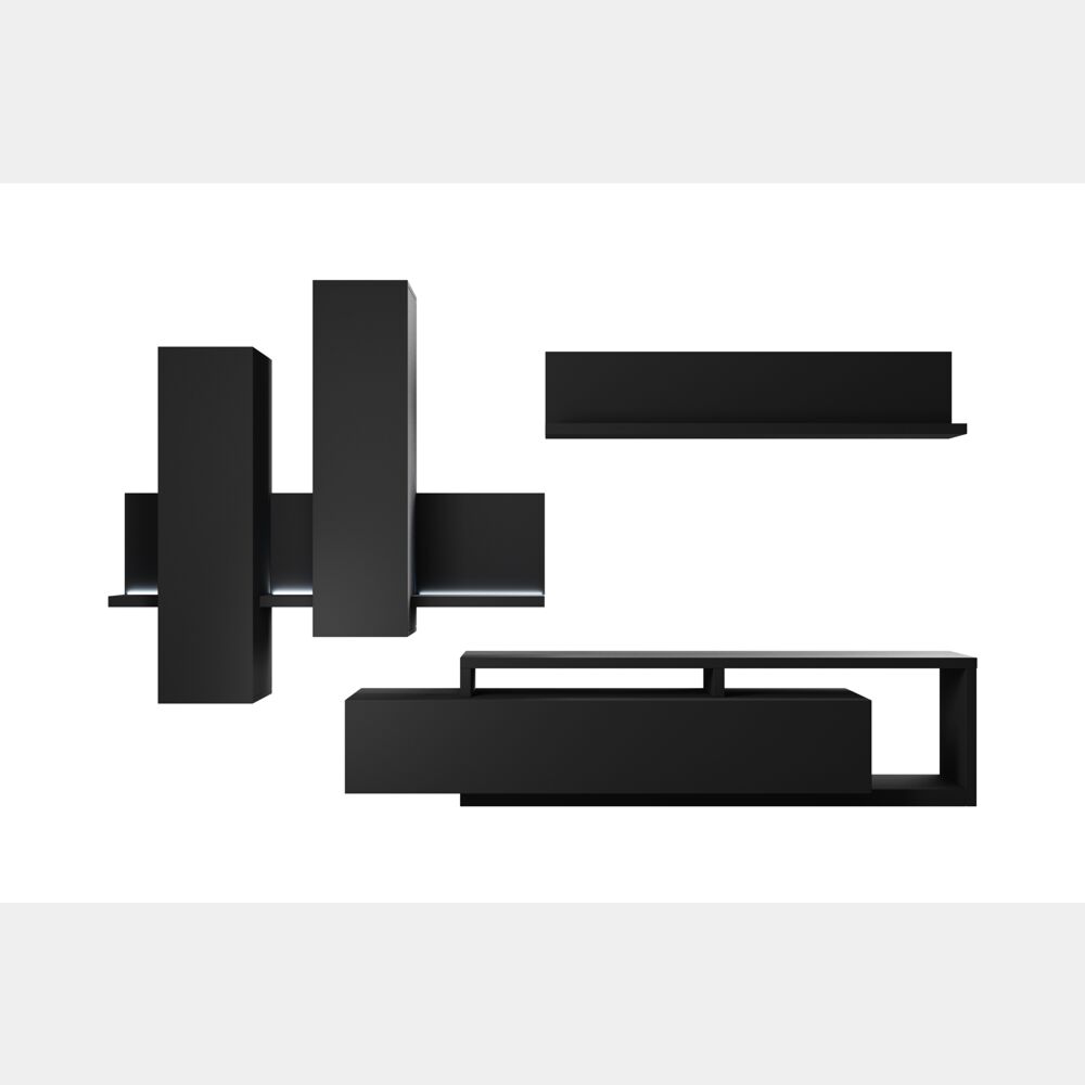 La Parete attrezzata Cracovia in finitura nero opaco è una composizione pratica ed originale. Per un soggiorno moderno di grande appeal.