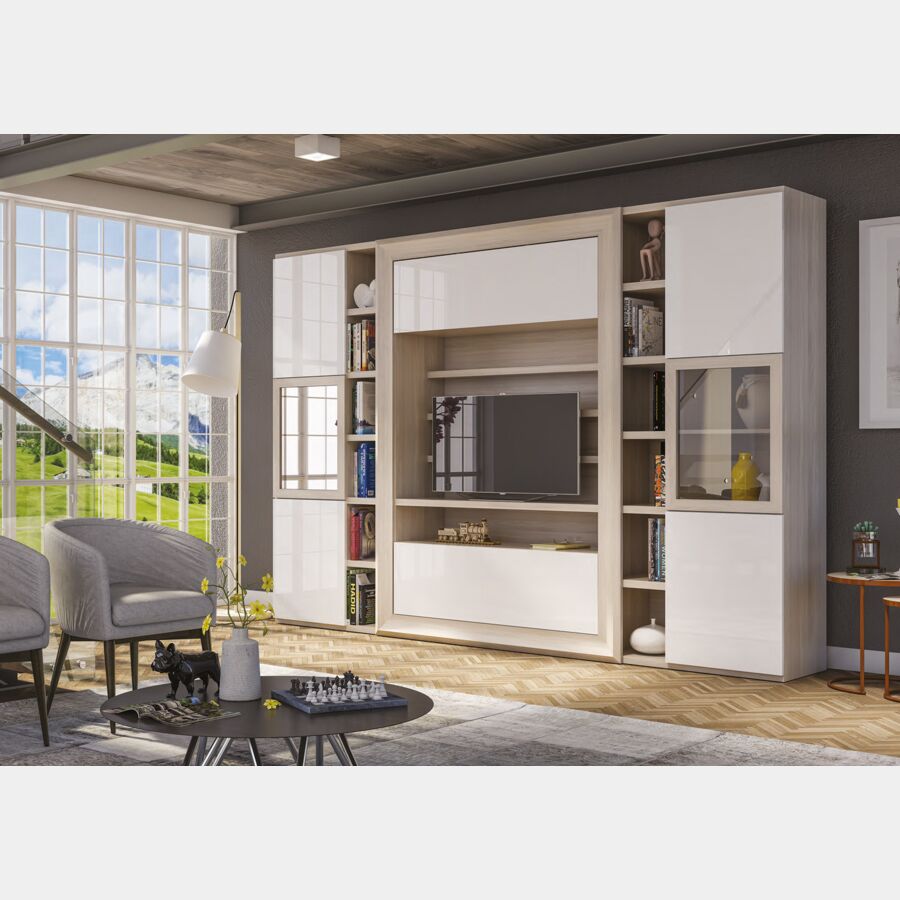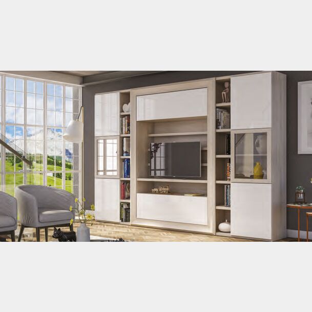 Le ante bianco lucido donano eleganza alla composizione. Questo mobile è la scelta giusta perchè completerà la parete del tuo living, arredandola con gusto ed eleganza.