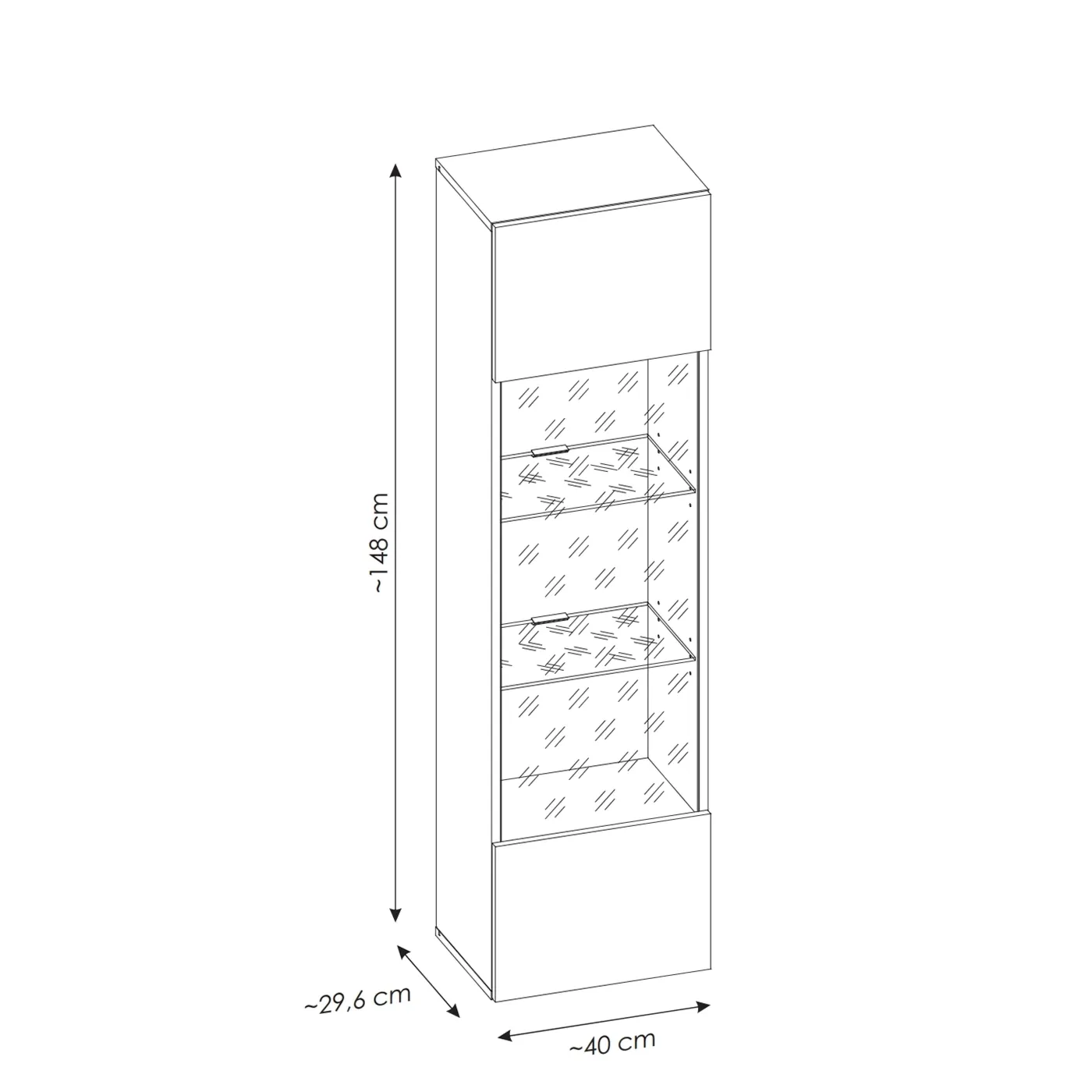 - Vetrina 2 ante 40x148x30 (spessore fianchi e anta 16 mm, spessore vetrata 4 mm, spessore ripiani in legno 16 mm, spessore ripiani in vetro 6 mm)