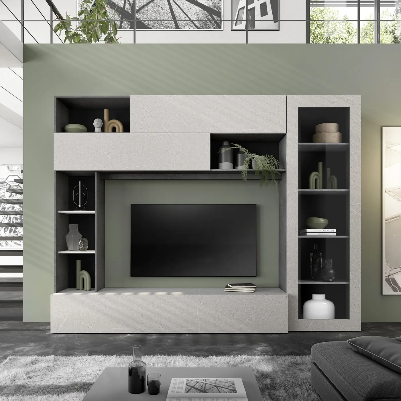Parete attrezzata in offerta, 272x210x40 h cm, Pietra e Ghisa