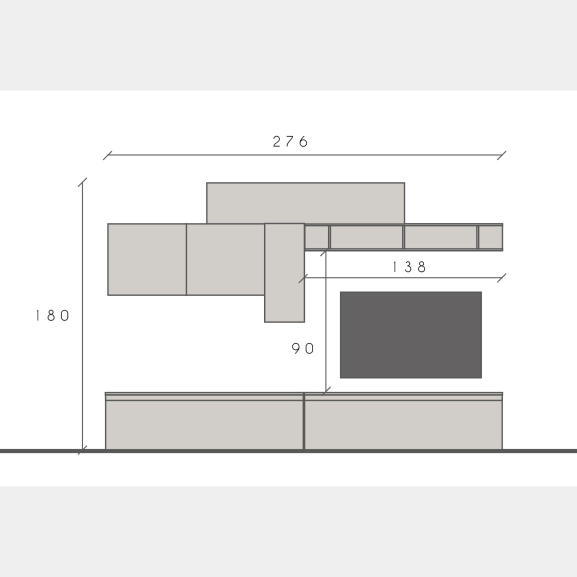 Parete attrezzata 276x40x190 h cm, Ardesia e Piombo, collezione Logica