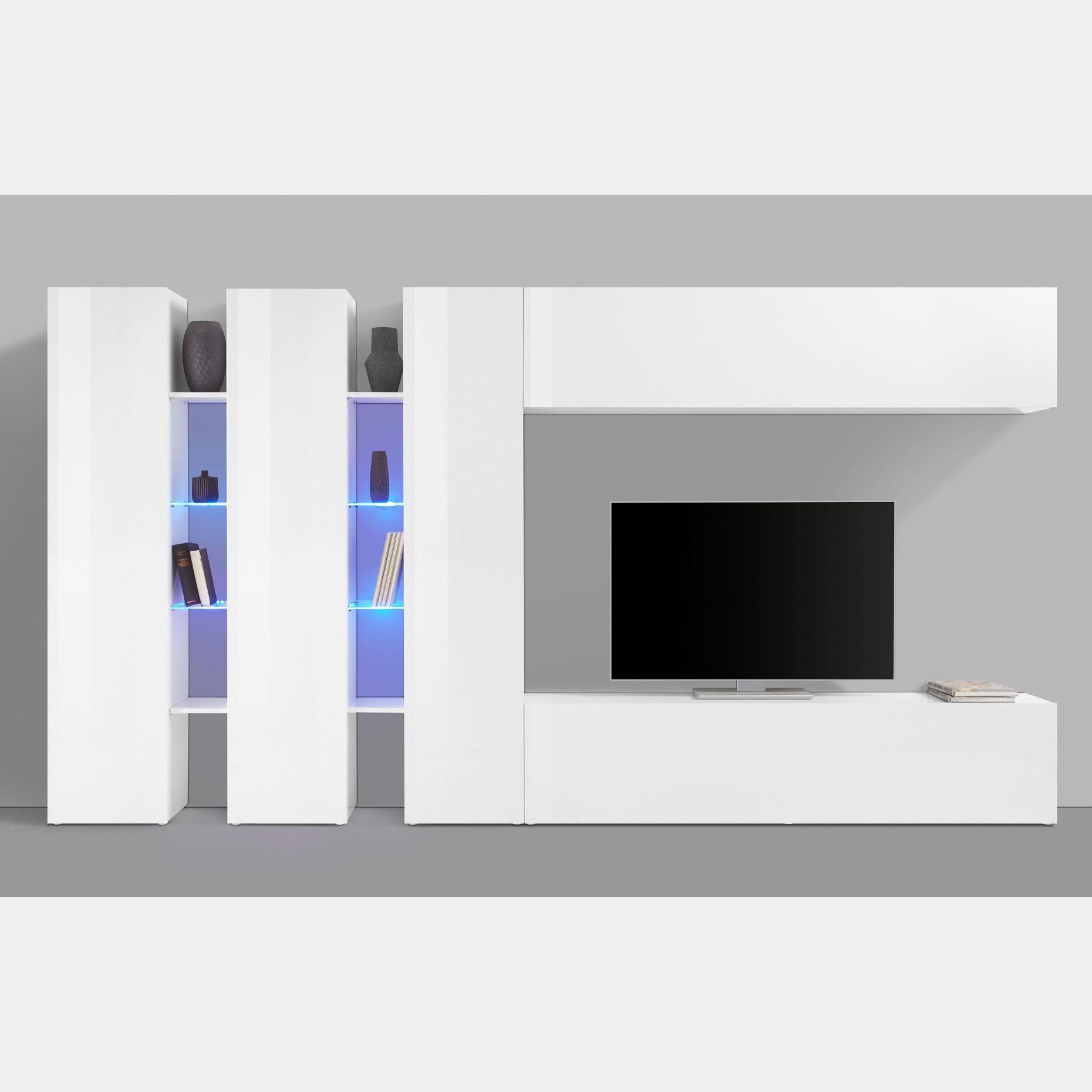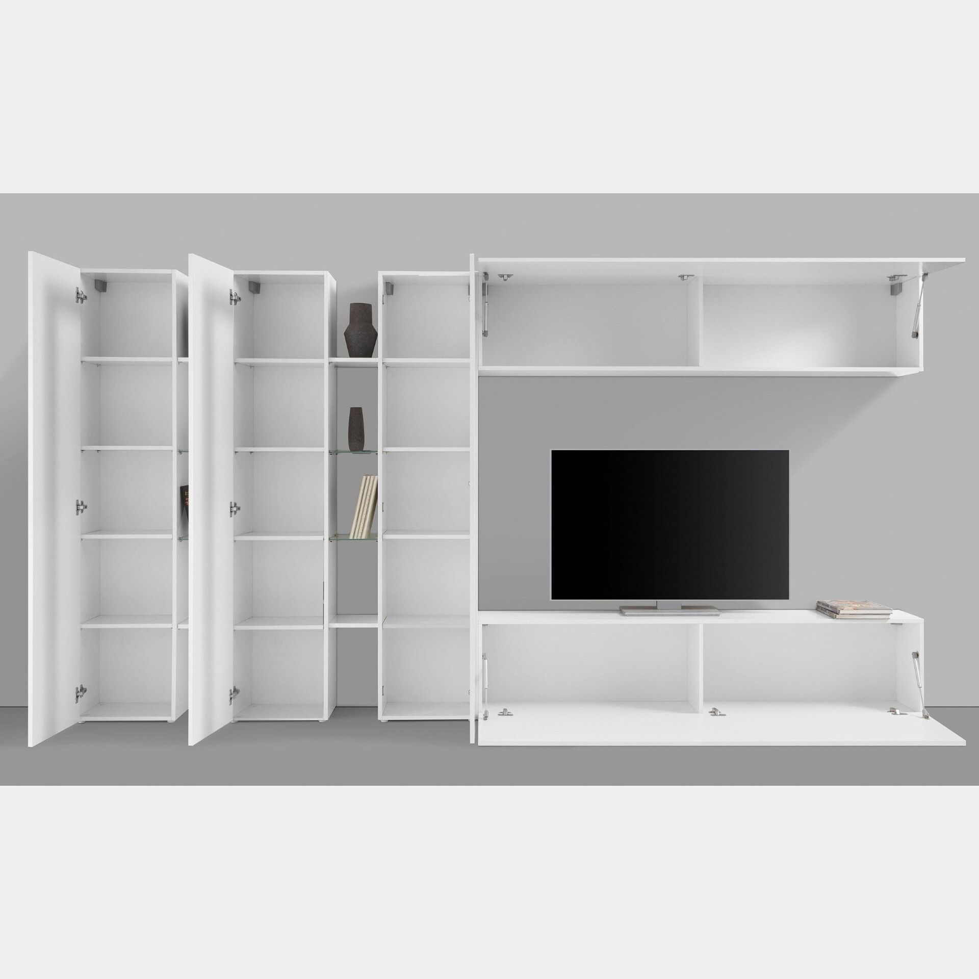 La parete attrezzata finitura Bianco lucido è disponibile in 6 diverse soluzioni pensate per rendere unica la tua zona living.