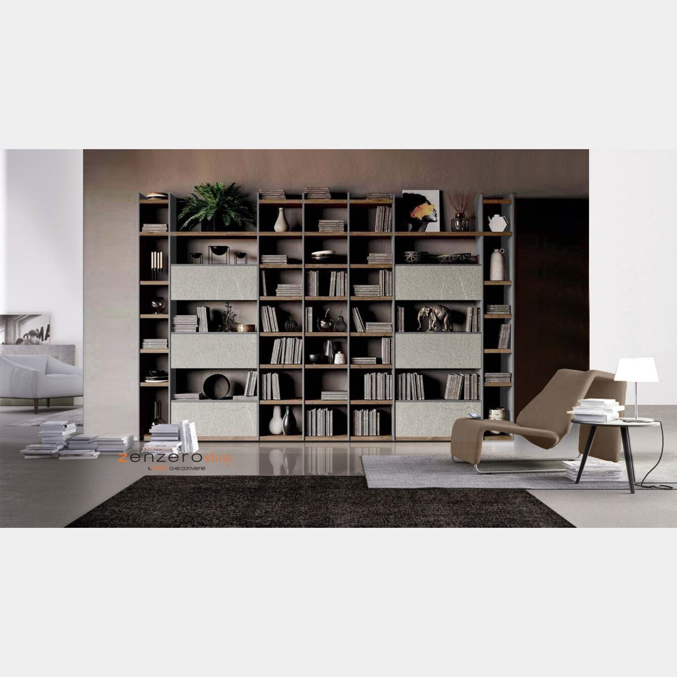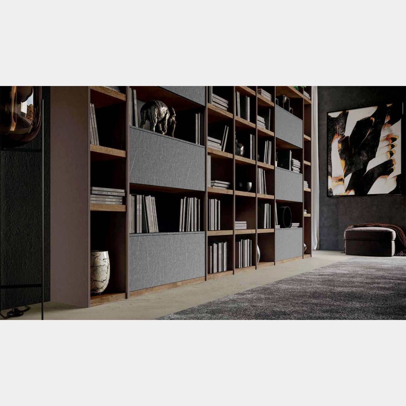 Parete attrezzata libreria di alta qualità in finitura Graniglia chiara, Grigio cenere e Rovere tabacco