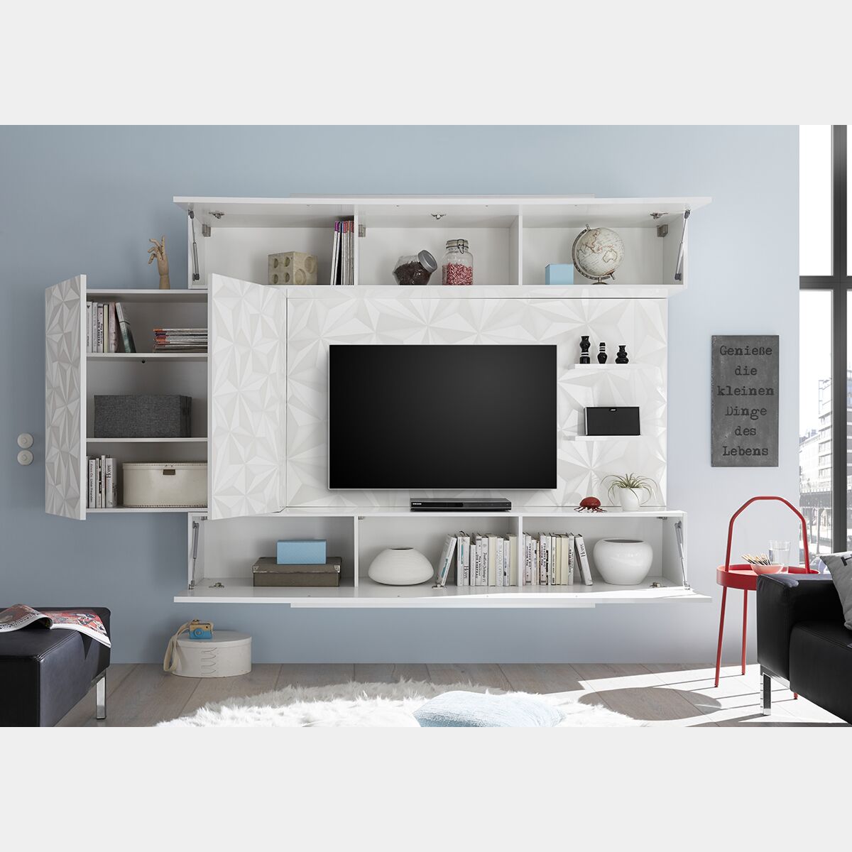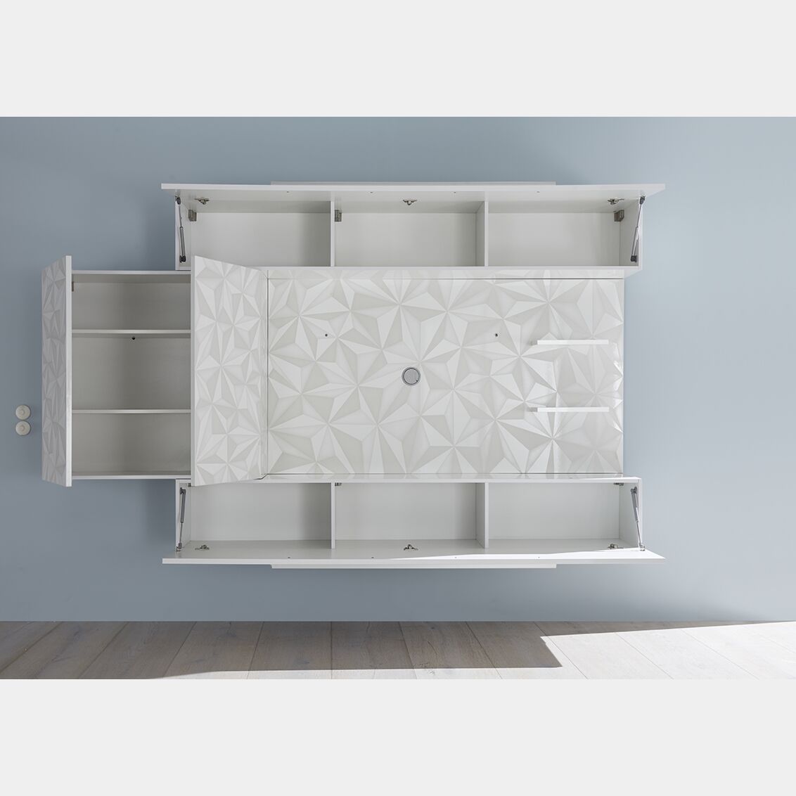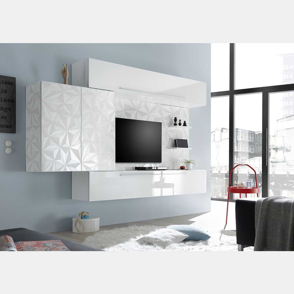 Parete attrezzata moderna con contenitore a parete Bianco Laccato Lucido serigrafato