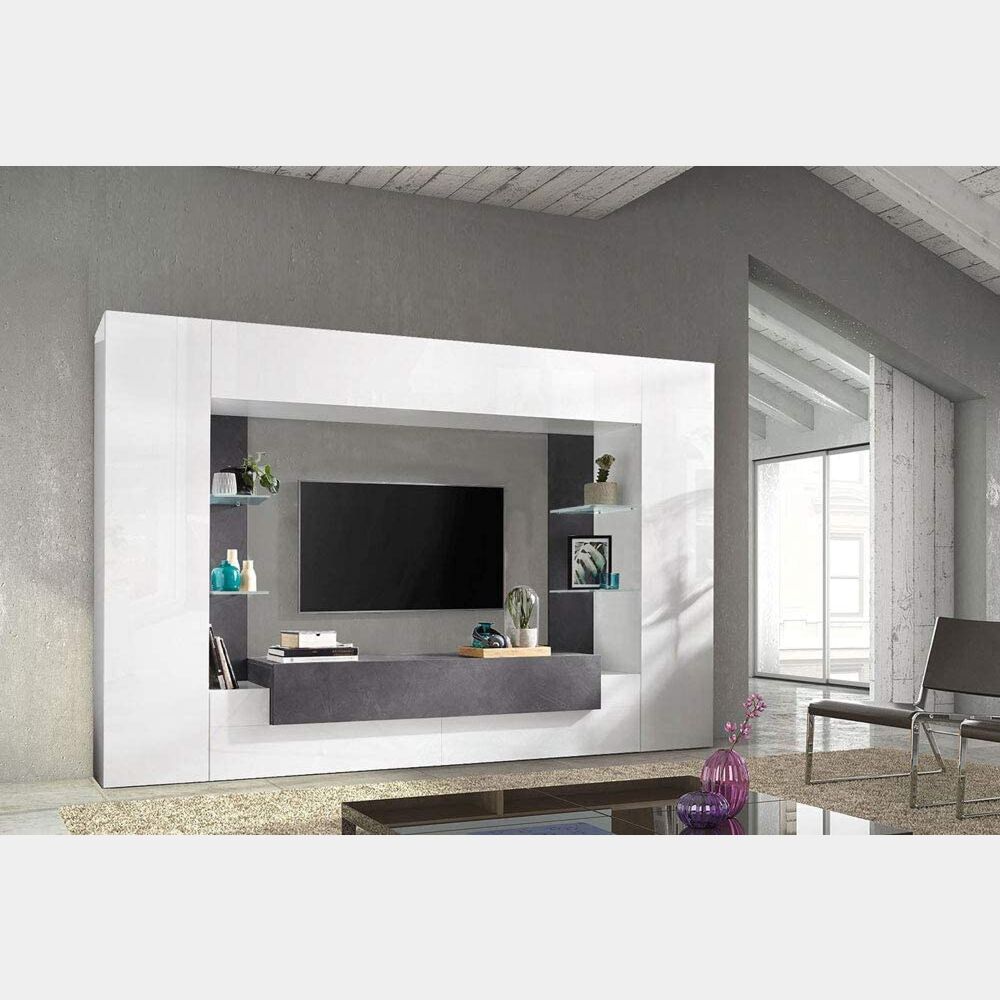 Parete attrezzata moderna, con pensile vasistas, mensole in vetro, finitura bianco lucido e ardesia Parete attrezzata moderna, con pensile vasistas, mensole in vetro, finitura bianco lucido e ardesia Parete attrezzata moderna, con pensile vasistas, mensole in vetro, finitura bianco lucido e ardesia Parete attrezzata moderna, con pensile vasistas, mensole in vetro, finitura bianco lucido e ardesia Parete attrezzata moderna, con pensile vasistas, mensole in vetro, finitura bianco lucido e ardesia