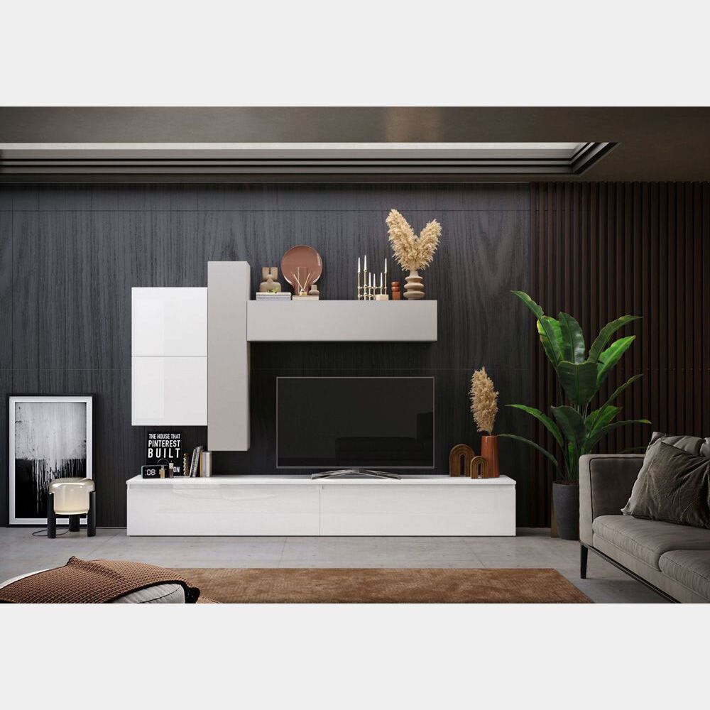 Caratterizzata dall'elegante abbinamento cromatico del bianco lucido con il gesso, è perfetta per mantenere il salotto sempre in ordine e esporre i tuoi ricordi e i tuoi oggetti preferiti!