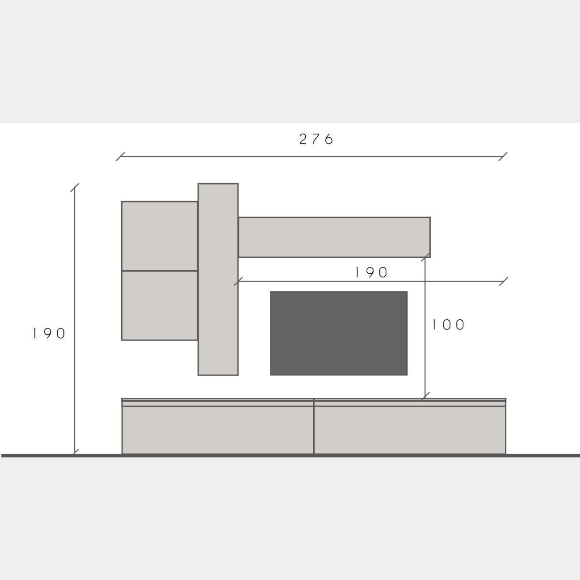 Parete attrezzata moderna da soggiorno 276x210x40 h cm, finitura Gesso e Bianco Lucido, collezione Logica