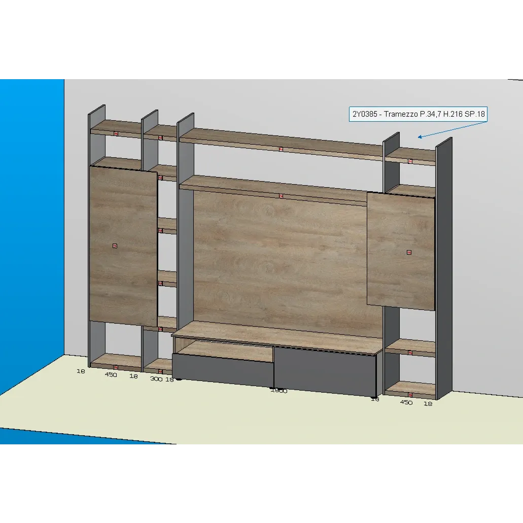 Parete attrezzata moderna di design in finitura Grigio cenere e Quercia