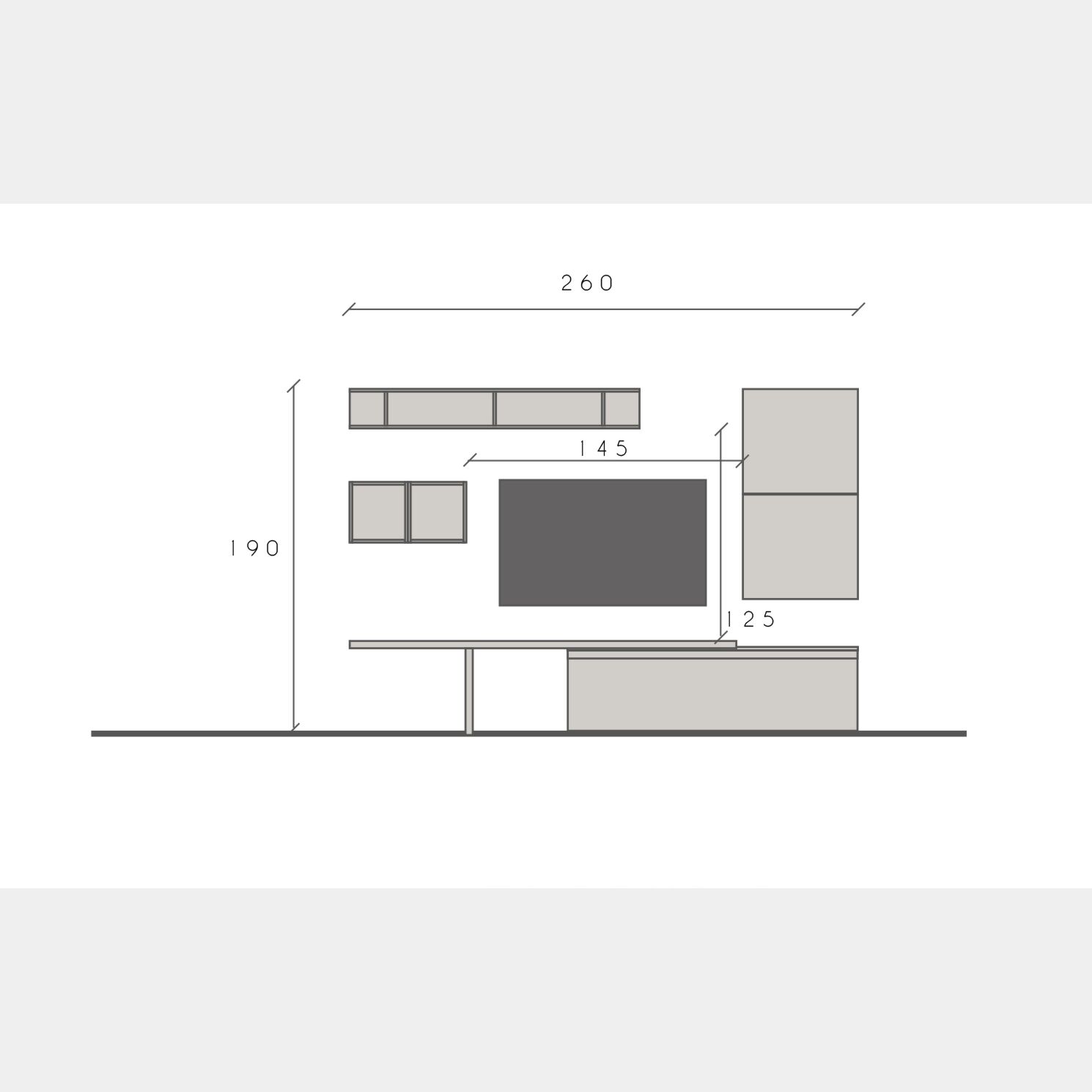 Parete attrezzata 260x40x190 h cm, Argilla, Cadiz e Bronzo, collezione Logica