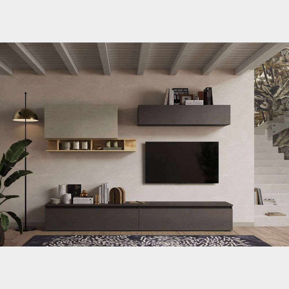 Parete attrezzata 276x40x200 h cm, Argilla, Cadiz e Lava, collezione Logica