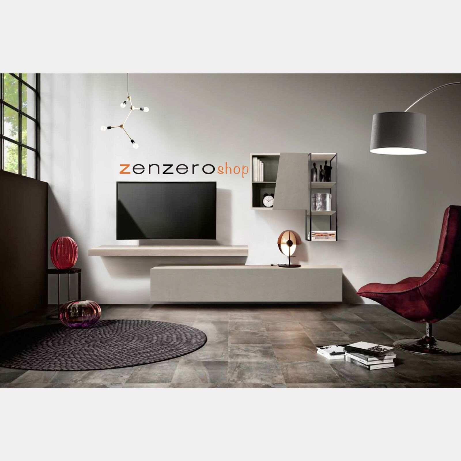 Parete attrezzata moderna finitura Argilla e Rovere Sbiancato