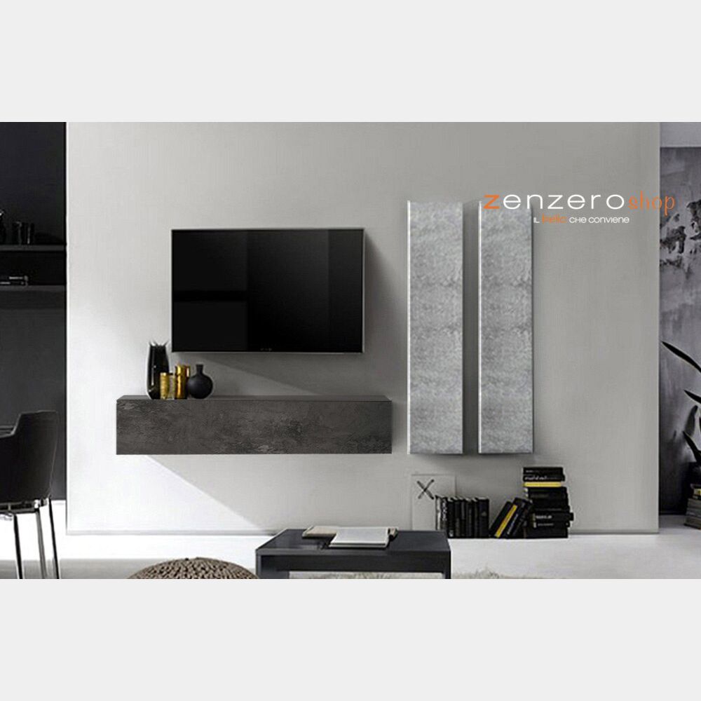 Parete attrezzata in Beton e Ossido, le forme logiche e rigorose risalteranno il vostro soggiorno, e il colore bianco, moderno, darà luminosità al vostro spazio quotidiano.