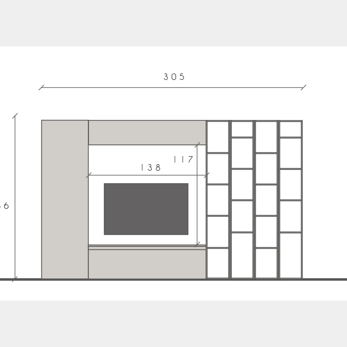 -1 Base TV con cassettone finitura Ardesia: L.138 P.40 H.40