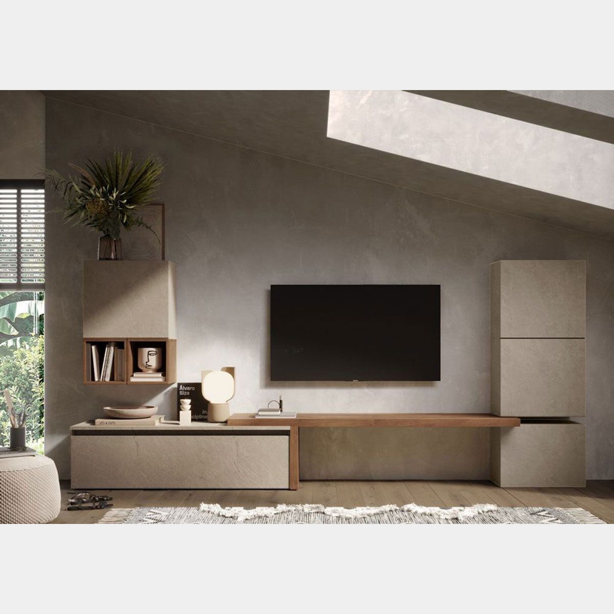 L'attenzione dei tuoi ospiti sarà catturata dalla Parete Attrezzata Argilla e Mercure grazie alla sua capienza e originalità diventerà la protagonista della zona living!