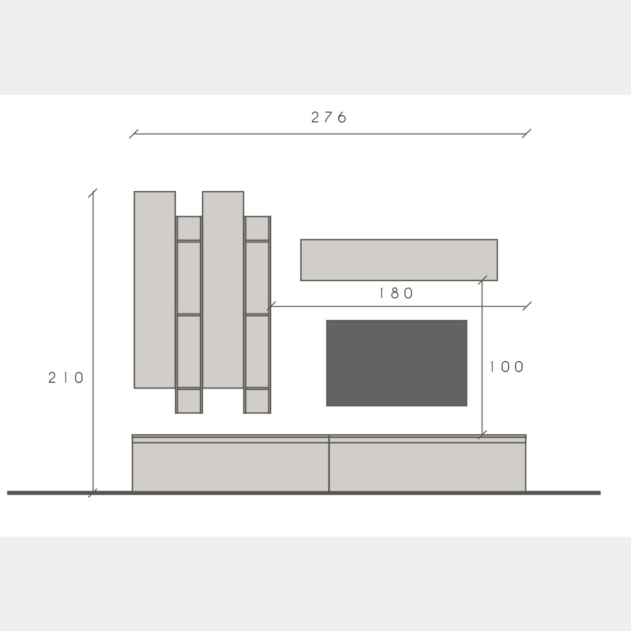 Parete attrezzata 276x40x210 h cm, Lava e Cadiz, collezione Logica