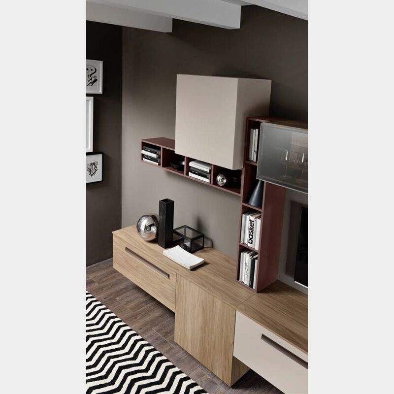 La delicata finitura in Cachemire incontra l'essenza del Noce naturale per unirsi al Rosso siena, il risultato è sorprendente ed accattivante. La parete attrezzata Nyasa propone una soluzione alternativa alle solite basi, formata da 2 ribalte e un cubo a terra garantisce una pulizia ottimale e veloce. L'unione di più elementi sospesi crea una composizione funzionale e pratica, rispettando i canoni del design moderno.