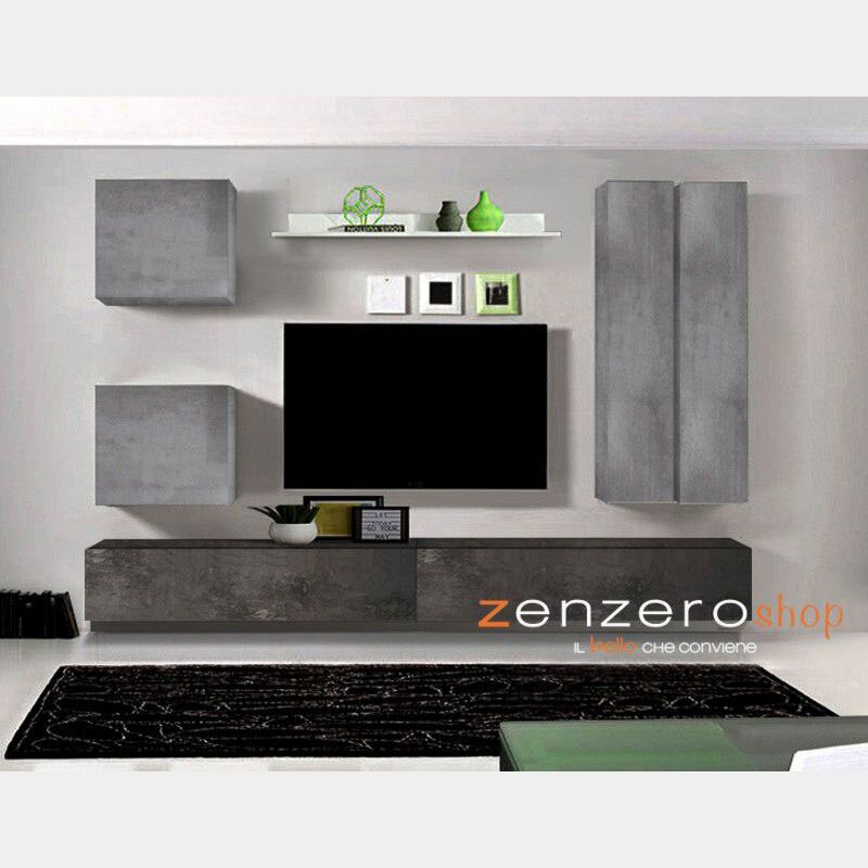 Parete attrezzata moderna prezzi bassi Bianca laccato lucida Beton Ossido soggiorno Zenzero