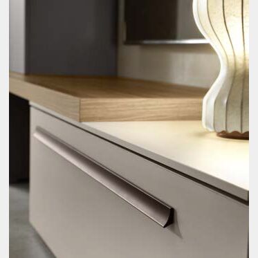 Ogni nostra soluzione trae origine dalle esigenze dell'uomo, dai suoi bisogni pratici, dalle infinite idee di gusto. Libertà espressiva, componibilità, soluzioni funzionali diventano così manifestazione della personalità e delle visioni di chi veramente vive ogni giorno la casa. L'accostamento delle delicate finiture in Grigio londra e Cachemire rendono l'ambiente accogliente e familiare, il Noce naturale sottolinea l'eleganza della parete Winnepeg.
