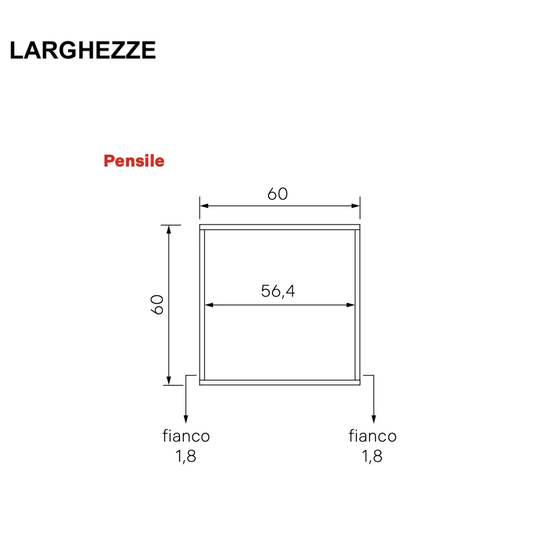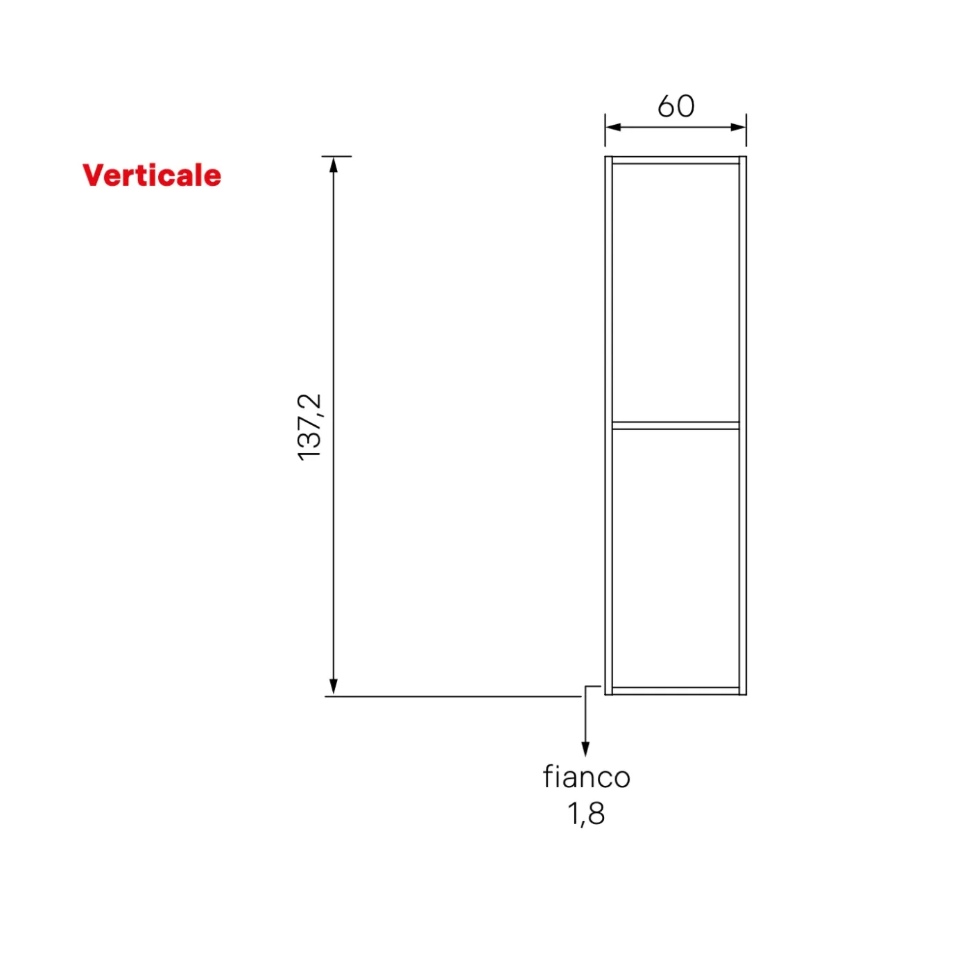 Spessore pannelli 18 mm, piedini regolabili inclusi. Prodotto fornito smontato. Elemento da fissare al muro.