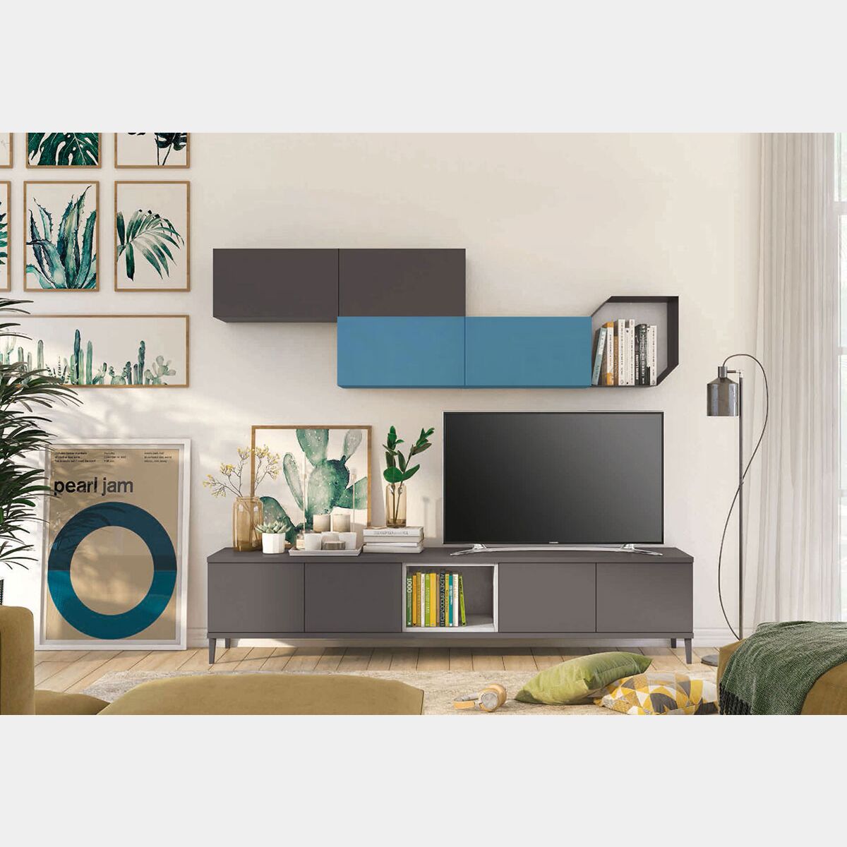 Parete attrezzata per la zona living, Grigio titanio con pensile Cadaques